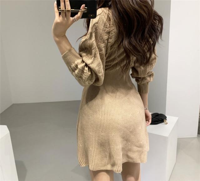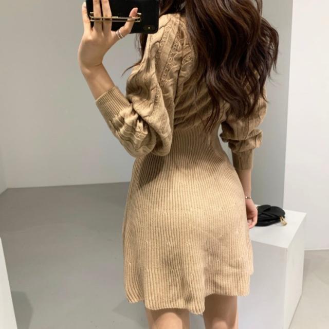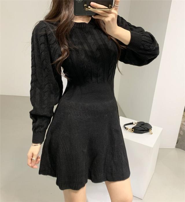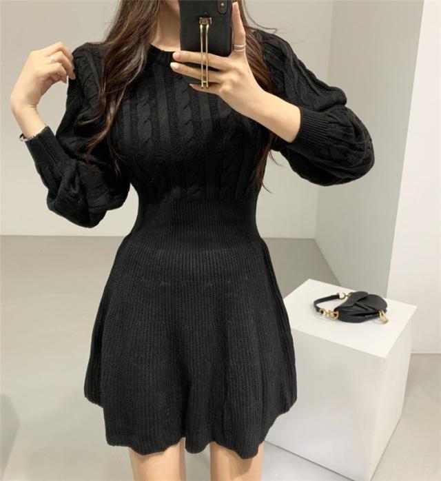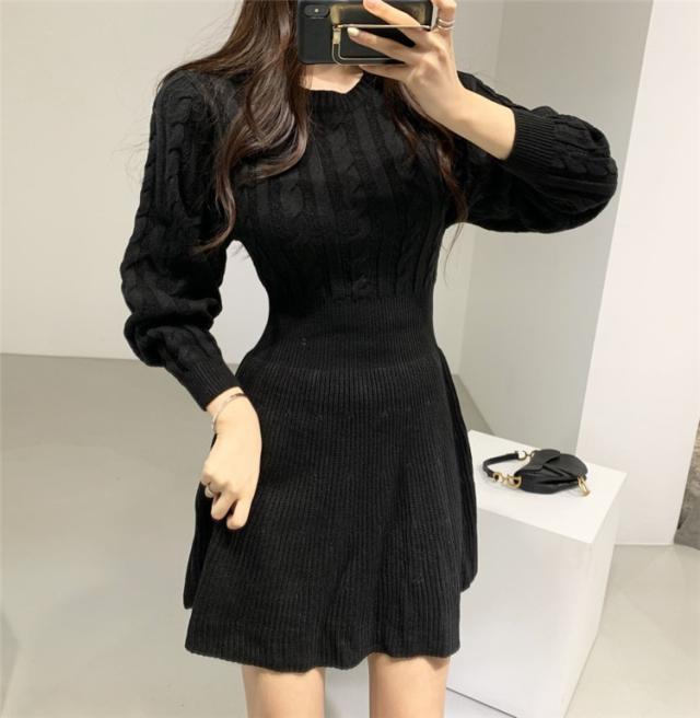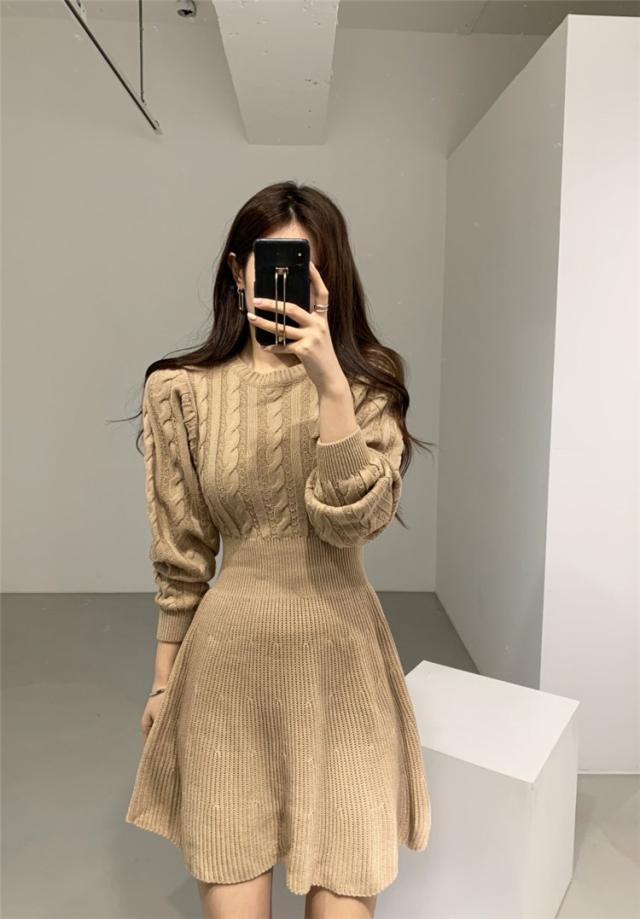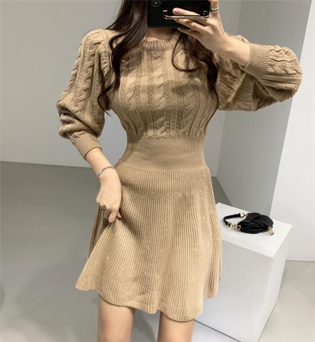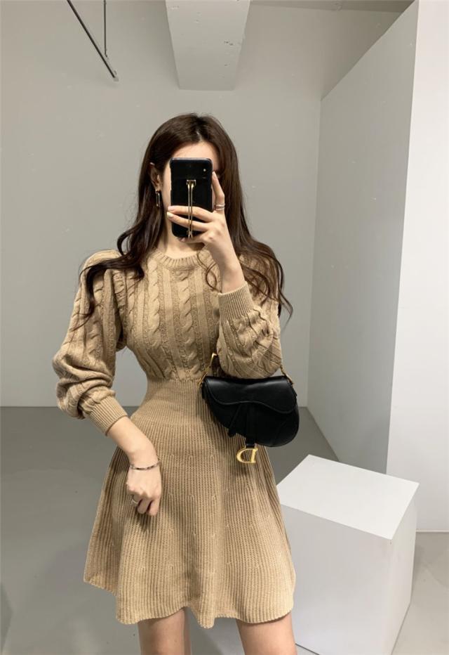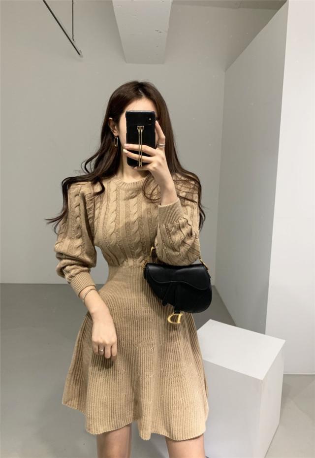 ニットワンピース コーデュロイ レディース ウエスト メリヤス セーター 秋冬 40代長袖トップス 韓国風 通勤 OL オシャレ 上品 体型カバー