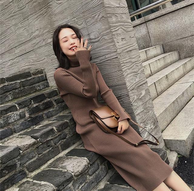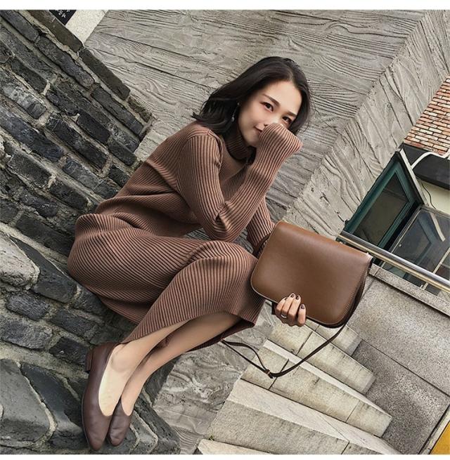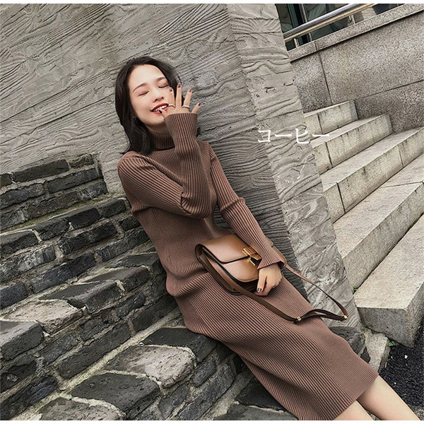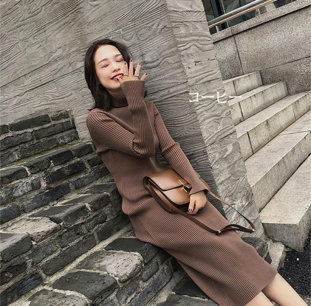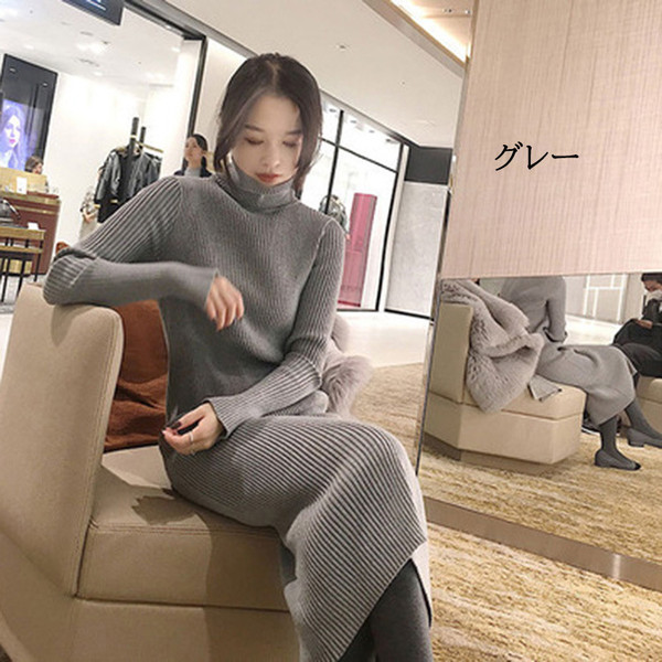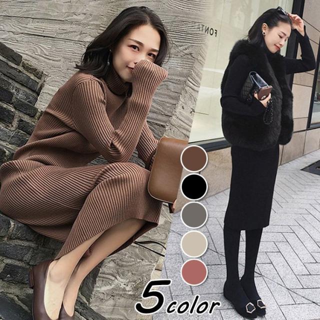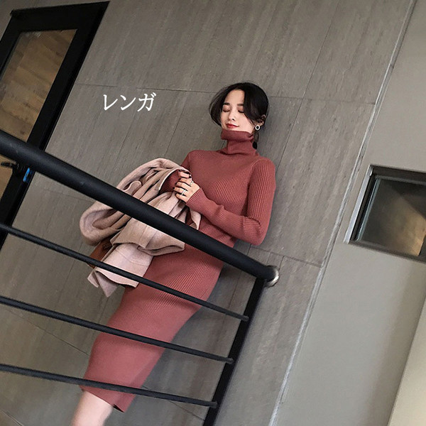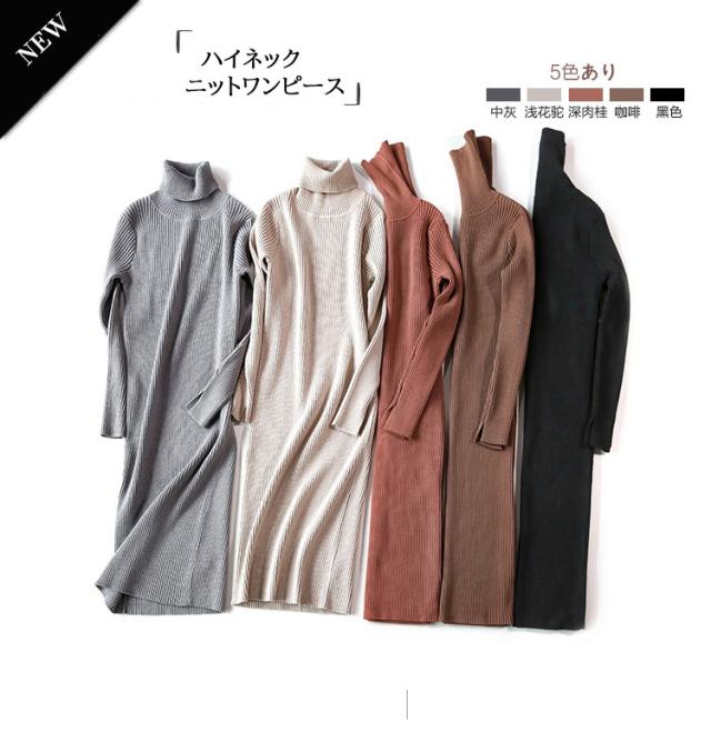 ニットワンピース レディース 40代 秋冬 長袖ワンピース ハイネック 無地ニット ロング丈タイトスカート ニットインナー セーター オシャレ 大人 上品