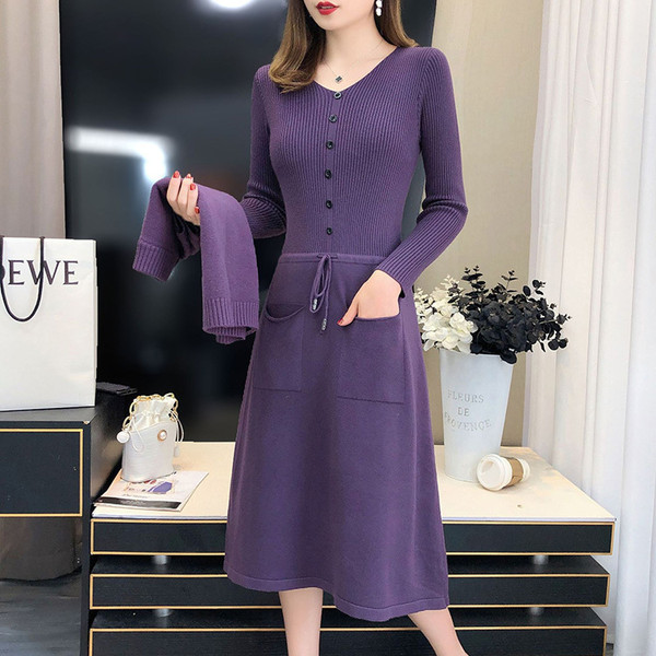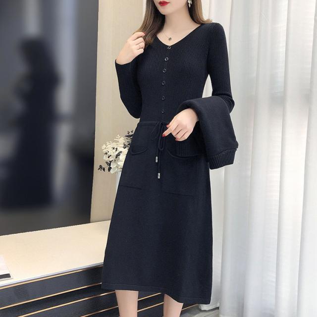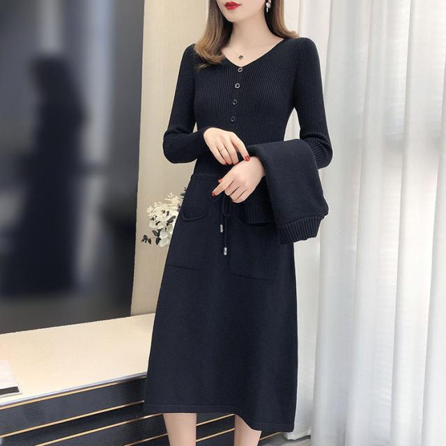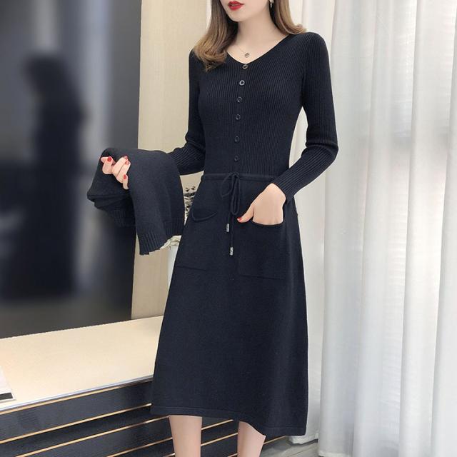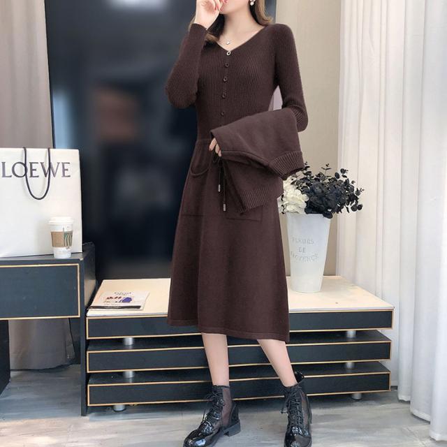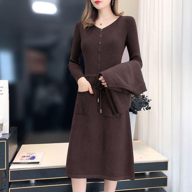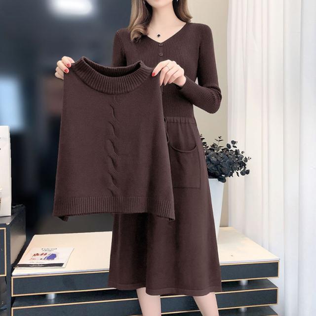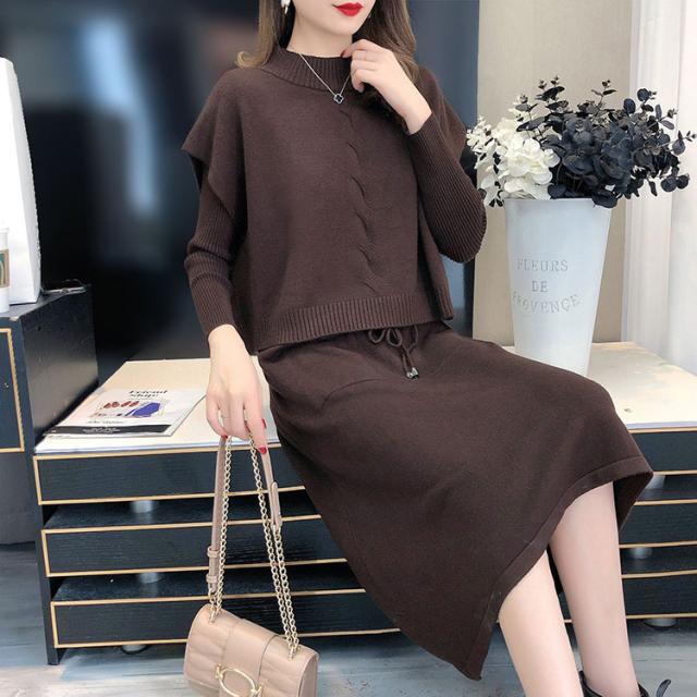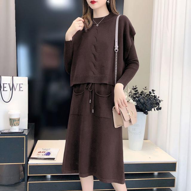 ニットワンピース2点セット レディース 40代 秋冬 長袖ワンピース ニットベスト 無地ニットセットアップ フレアスカートニットインナー オシャレ 結婚式ドレス