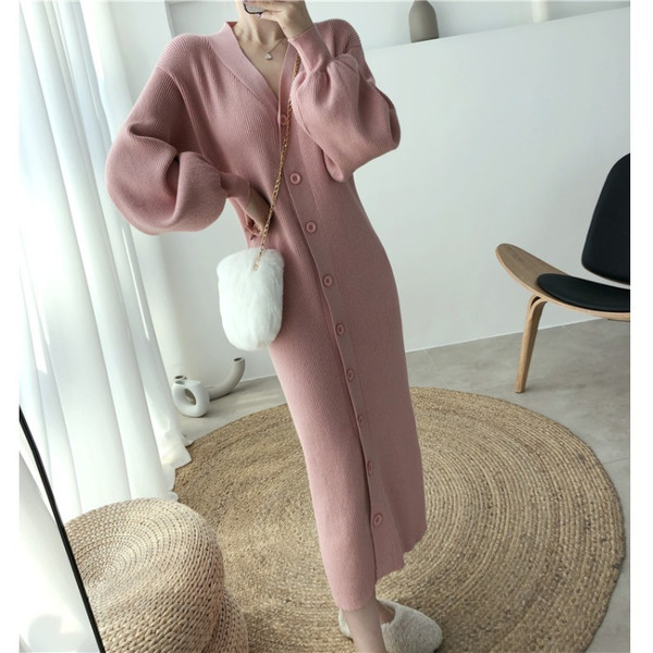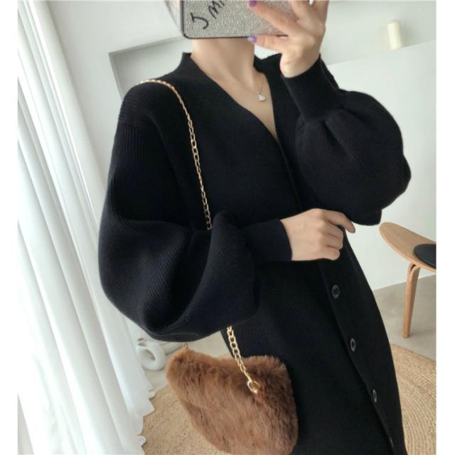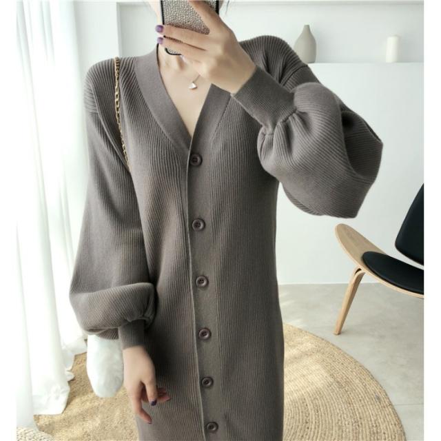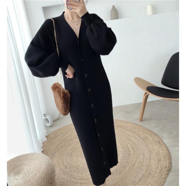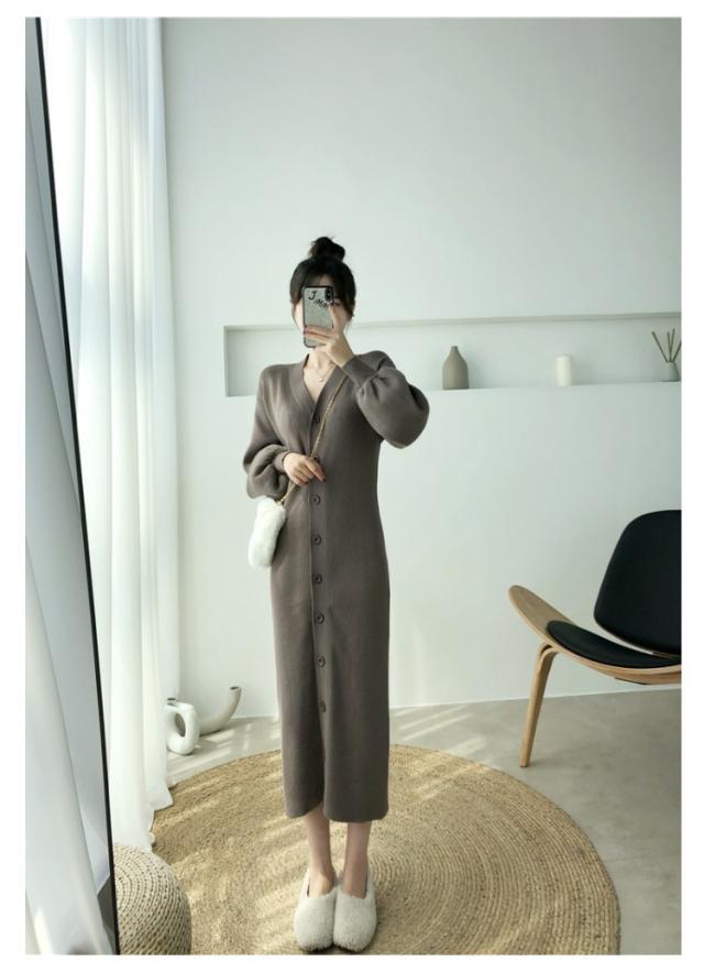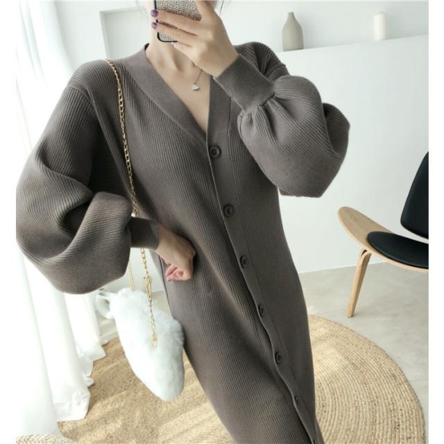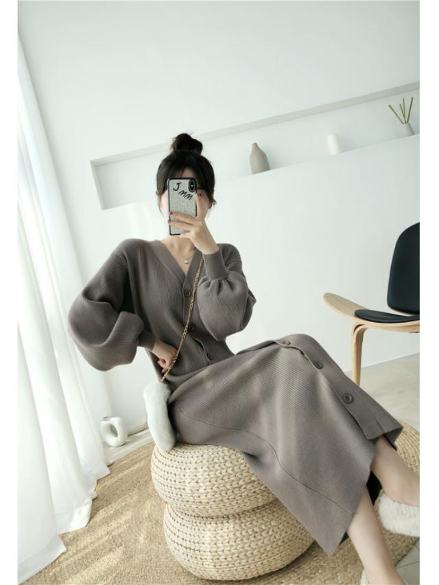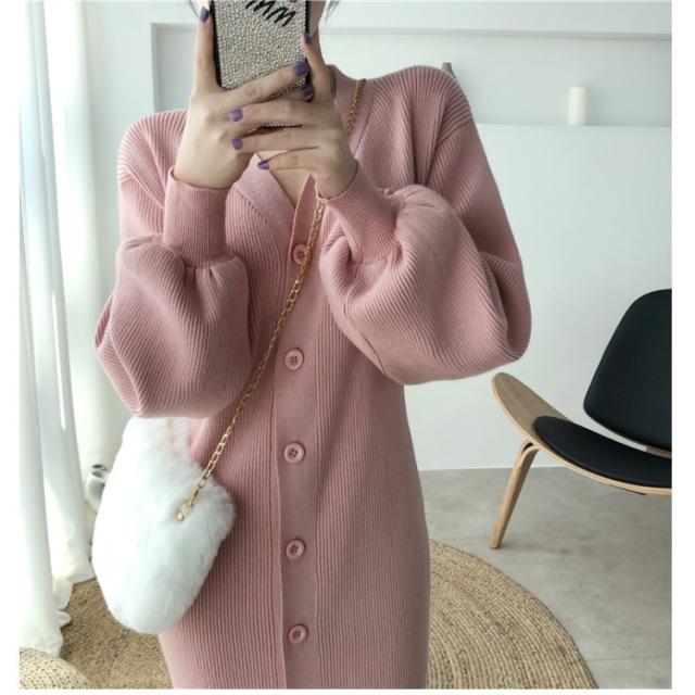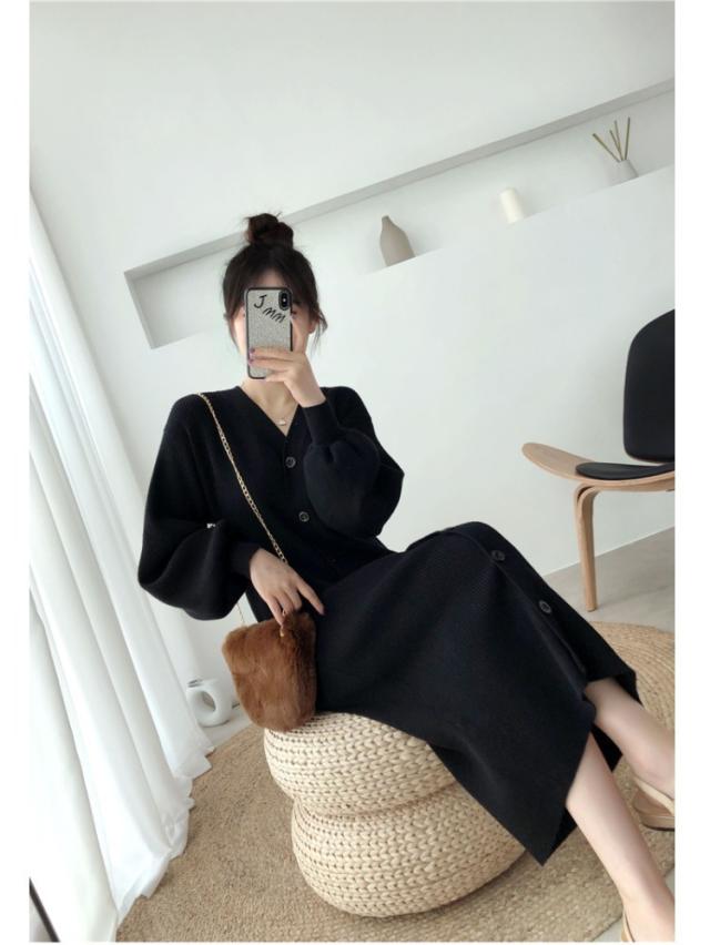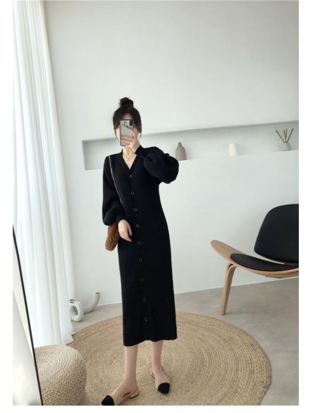 ニットワンピース レディース 40代 秋冬 長袖ワンピース vネックセーター バファローズワンピース ロング丈 ニットスカート インナー オシャレ 韓国風 大人