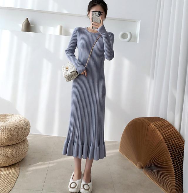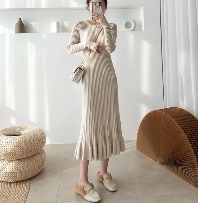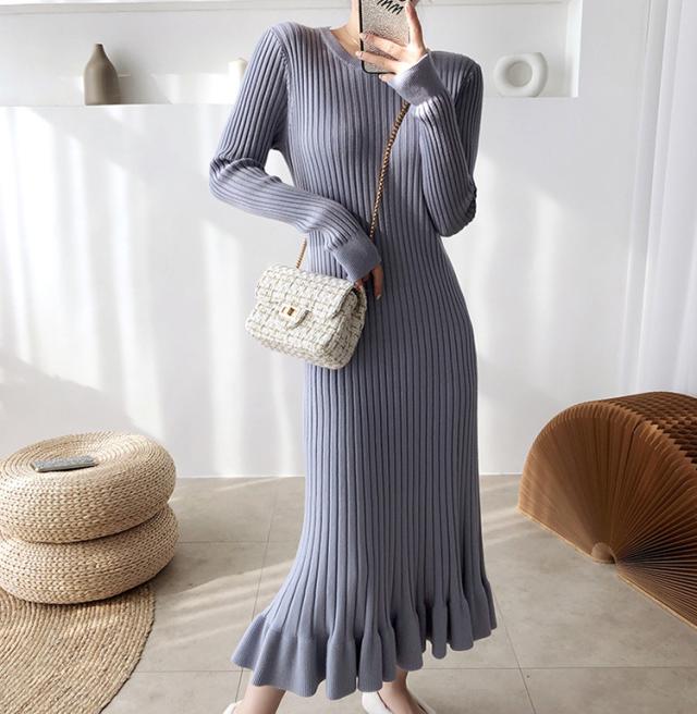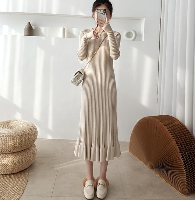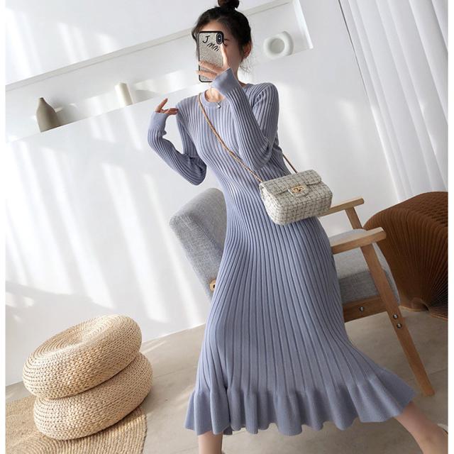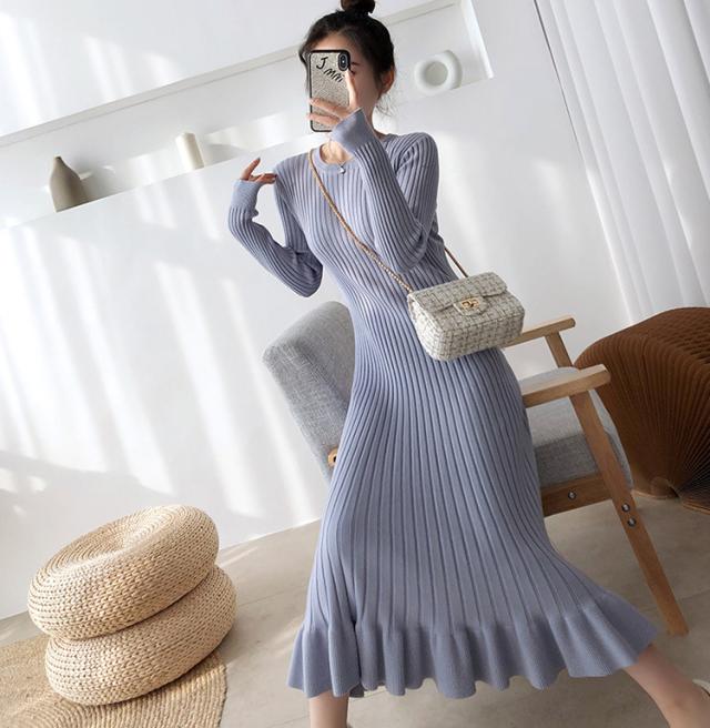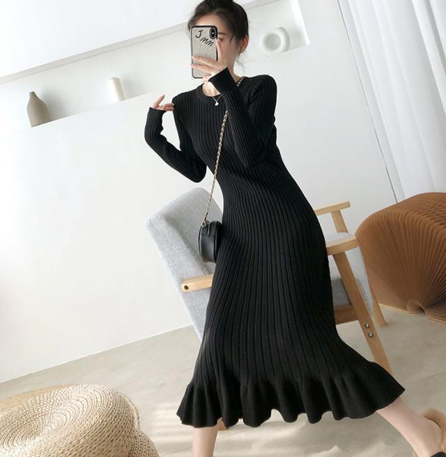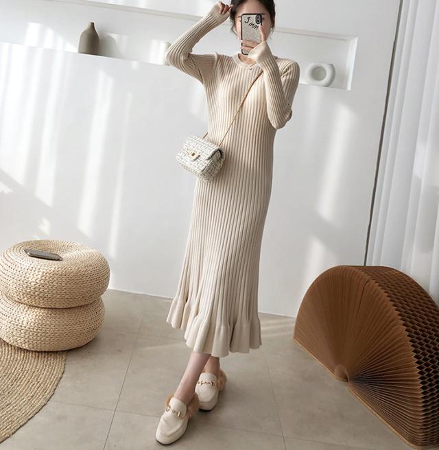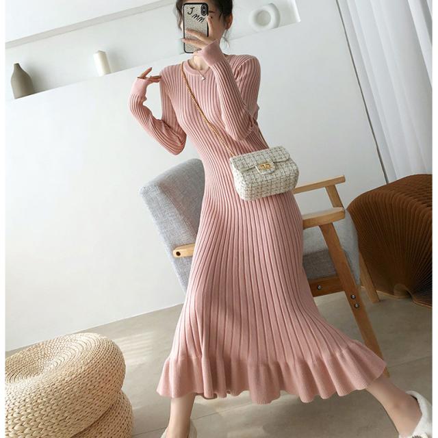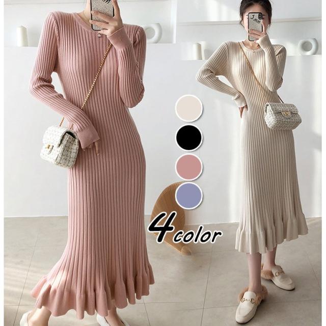 ニットワンピース レディース 40代 秋冬 長袖ワンピース 無地ニットプリーツスカート フレア ひざ下 ニットインナー オシャレセーター 韓国風 大人 上品