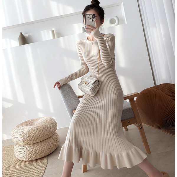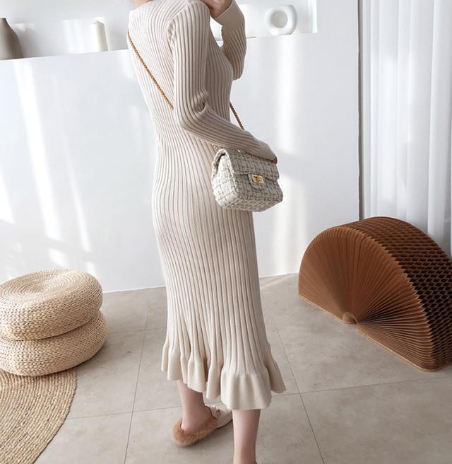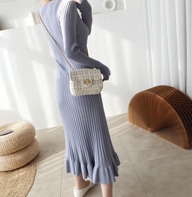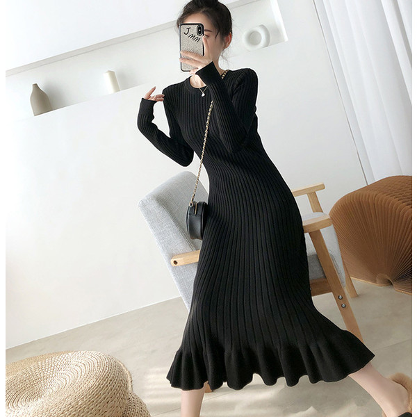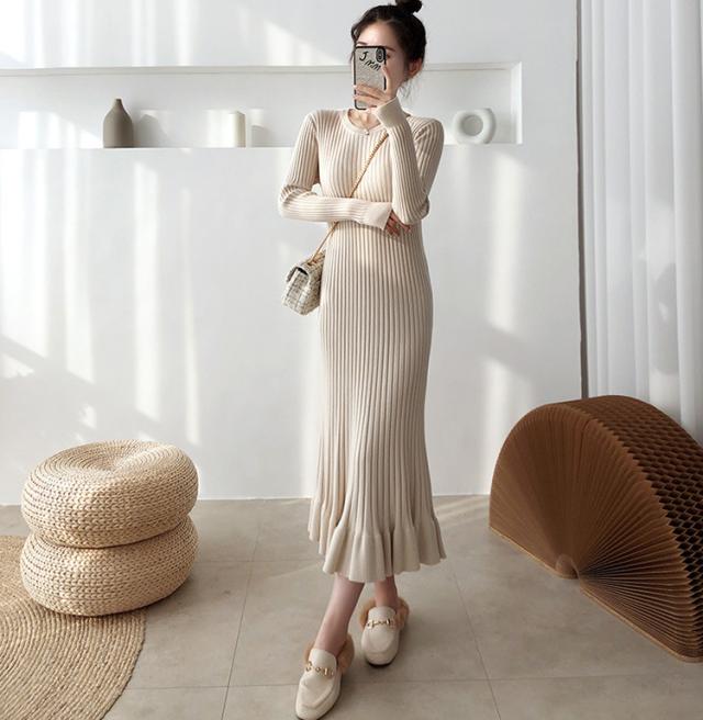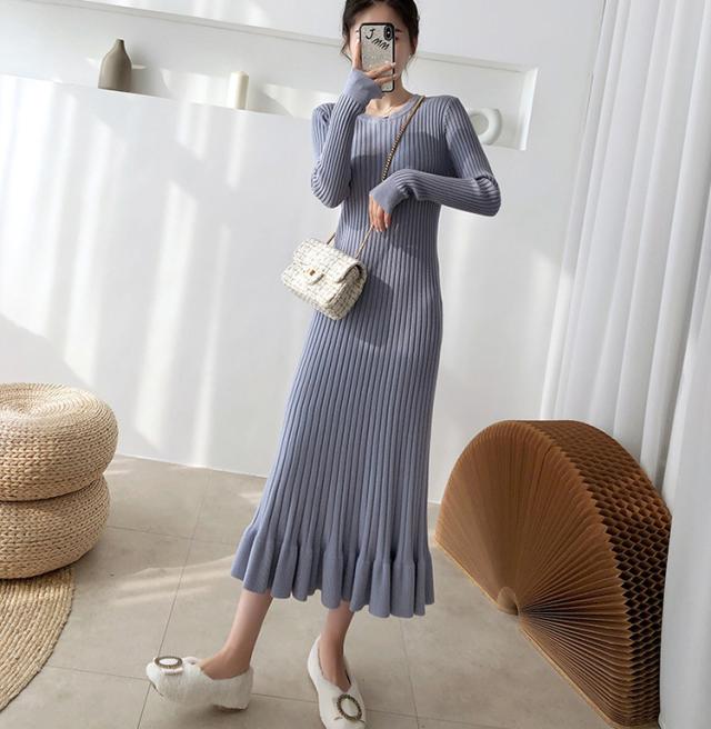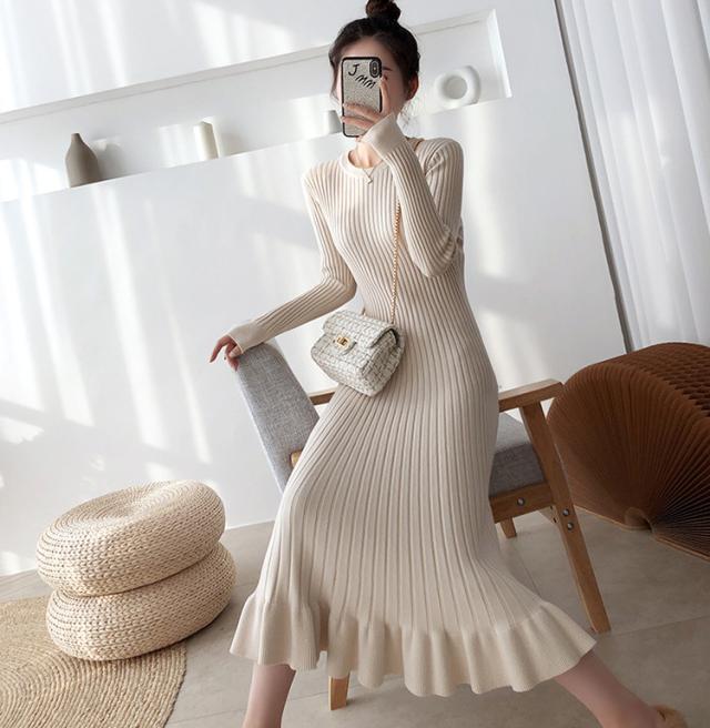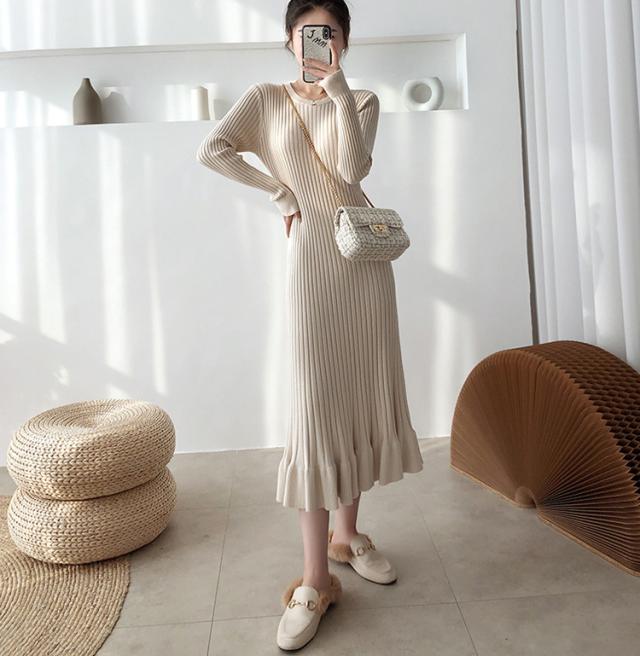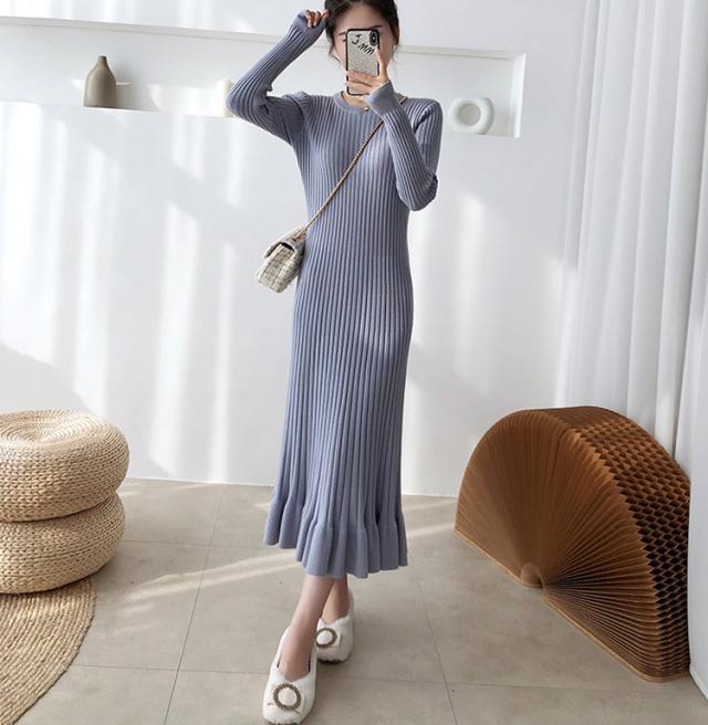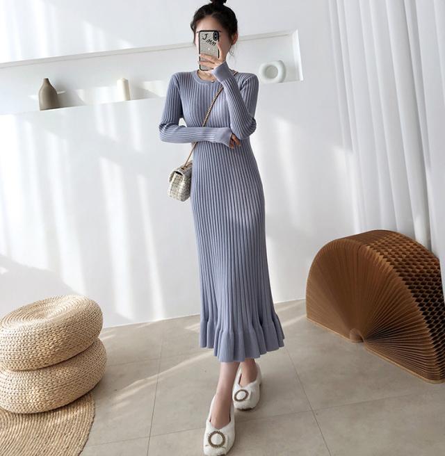 ニットワンピース レディース 40代 秋冬 長袖ワンピース 無地ニットプリーツスカート フレア ひざ下 ニットインナー オシャレセーター 韓国風 大人 上品