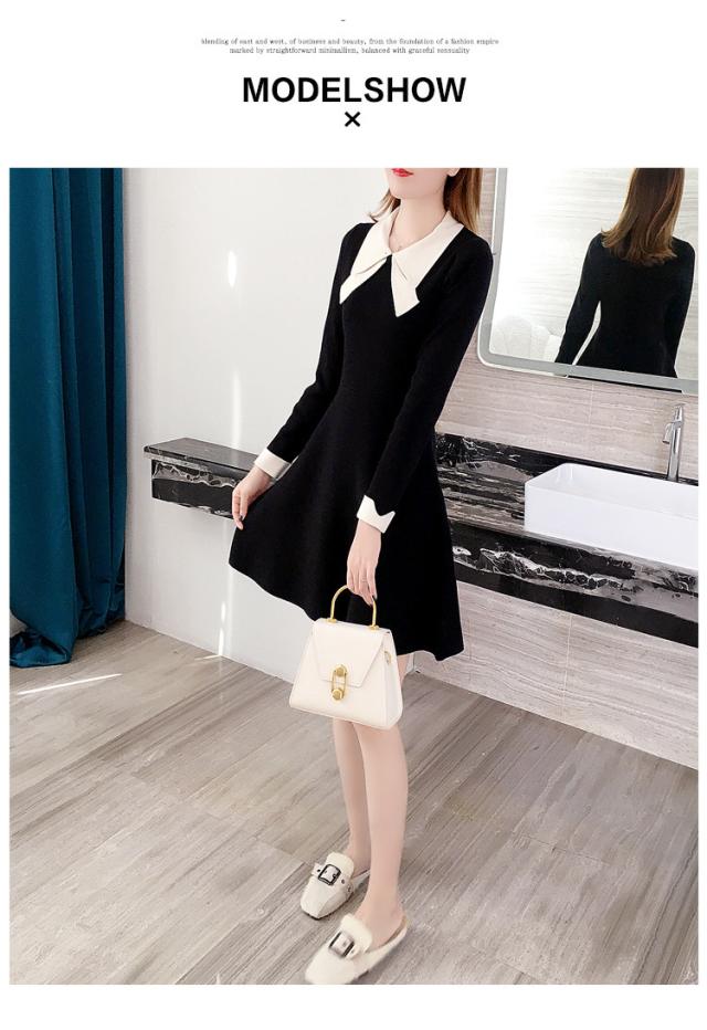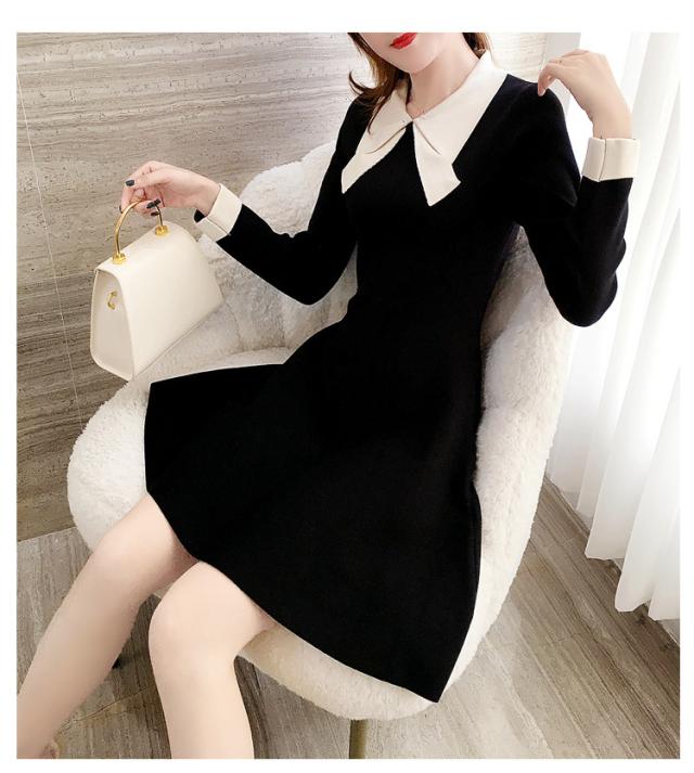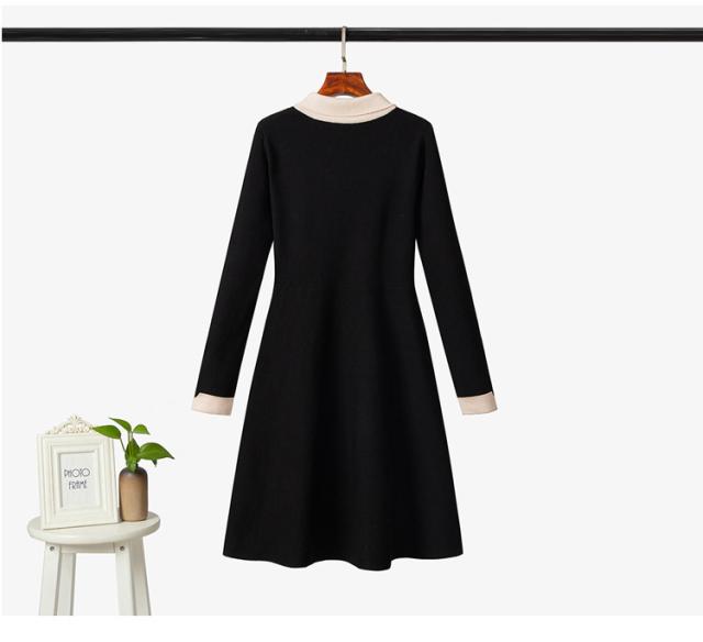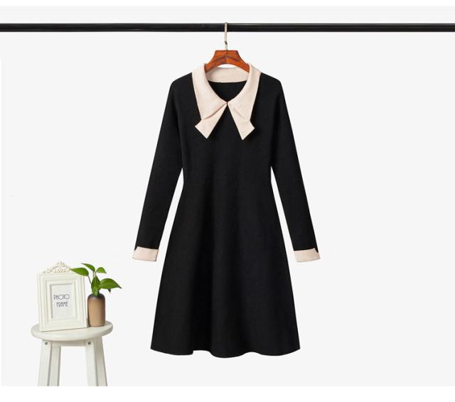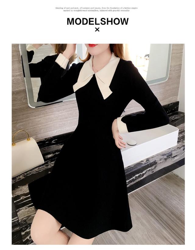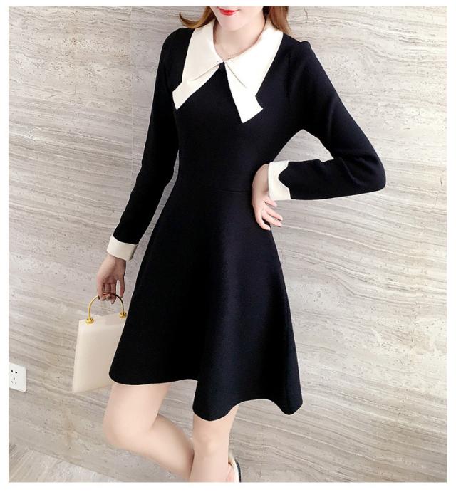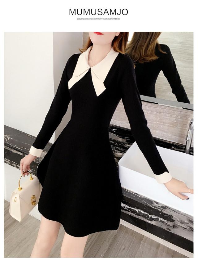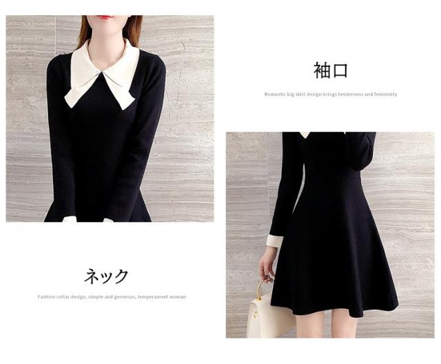 ニットワンピース レディース 40代 秋冬 長袖ワンピース リボンネック 黒 aラインスカート 膝丈セーター 韓国風 オシャレ大人 上品 着痩せ通勤 入学式 卒業式