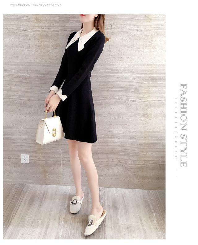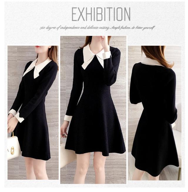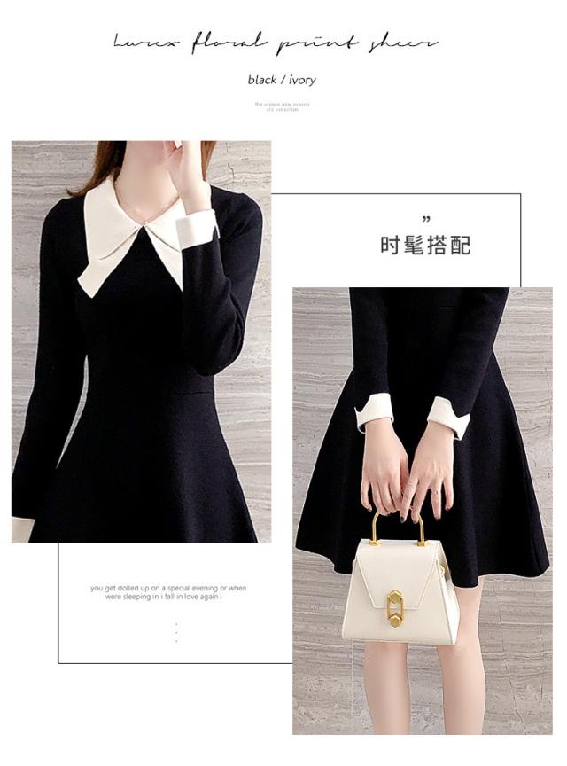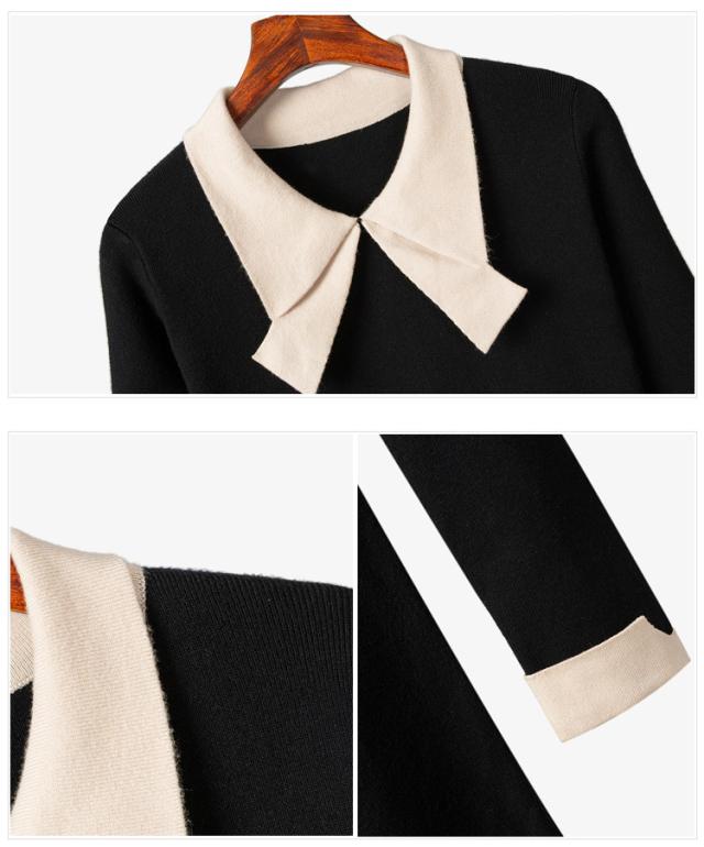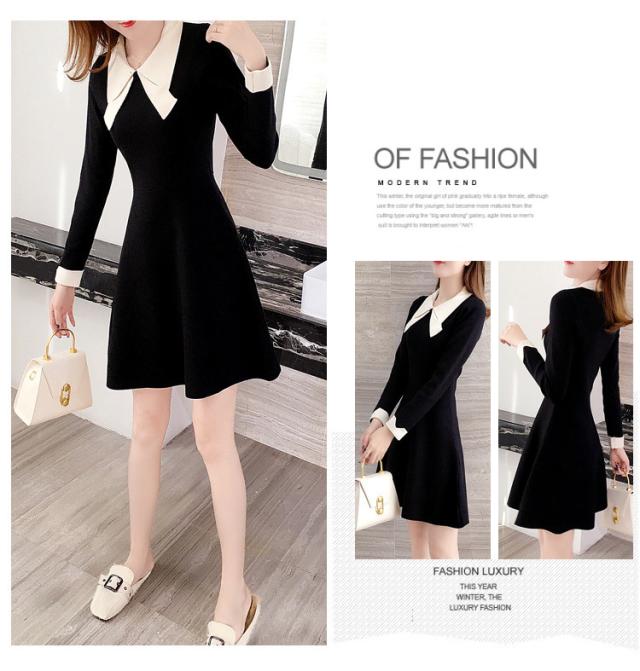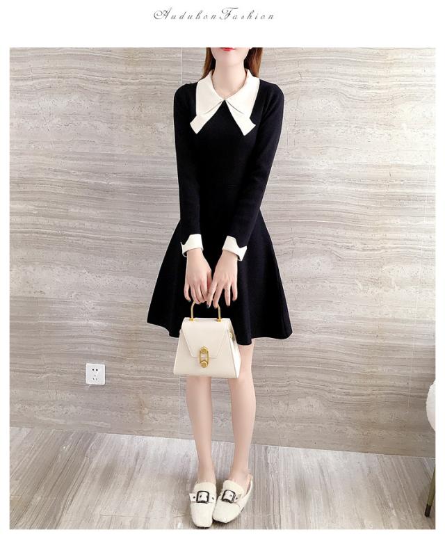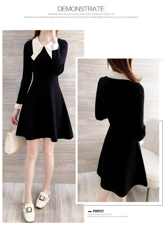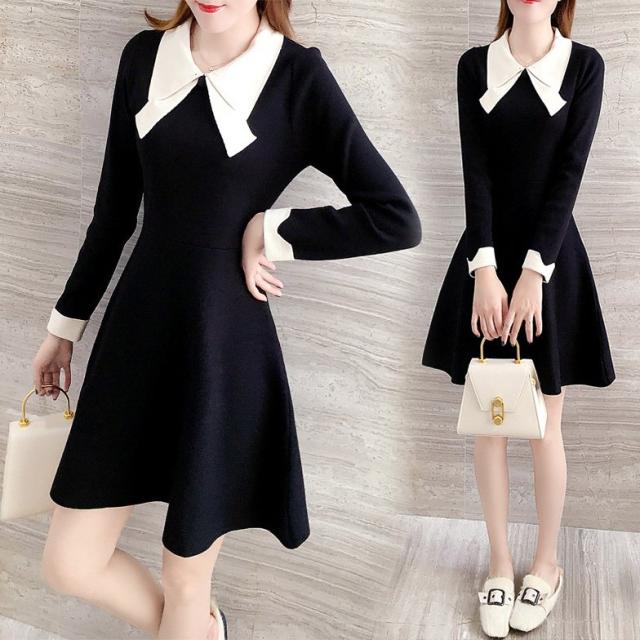 ニットワンピース レディース 40代 秋冬 長袖ワンピース リボンネック 黒 aラインスカート 膝丈セーター 韓国風 オシャレ大人 上品 着痩せ通勤 入学式 卒業式