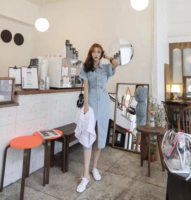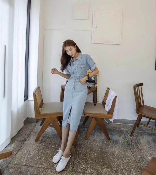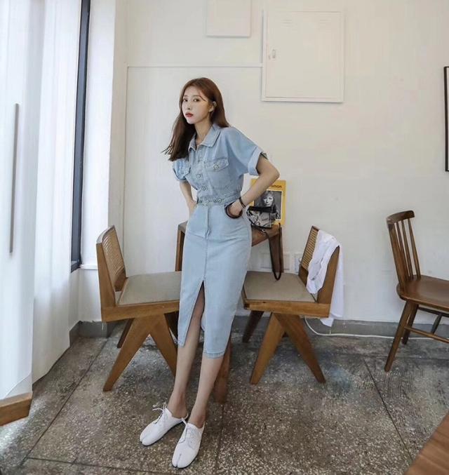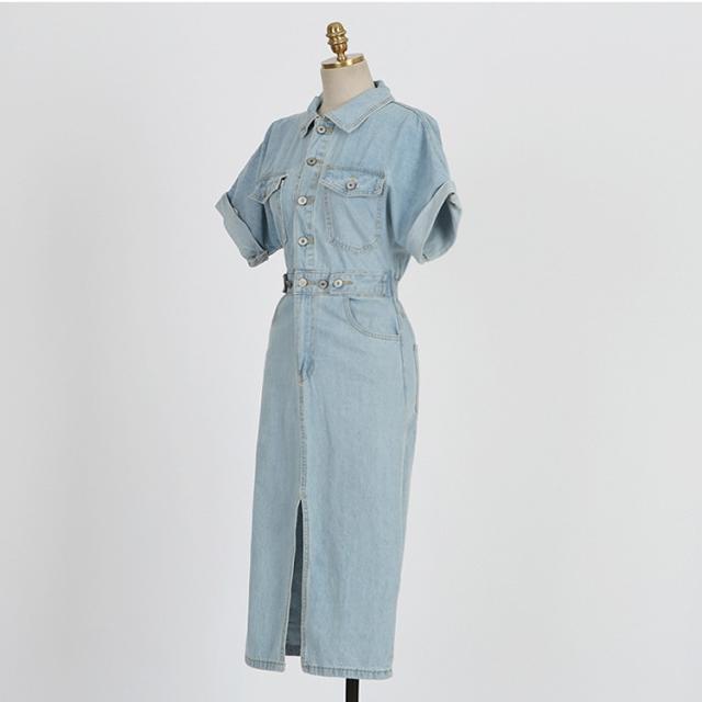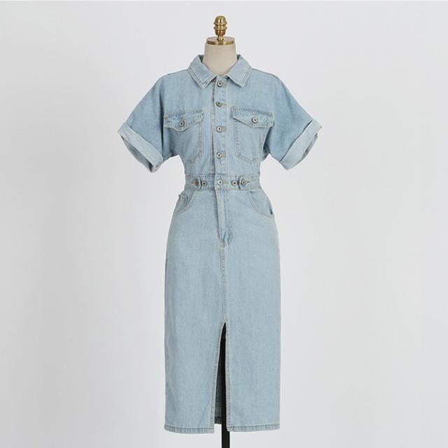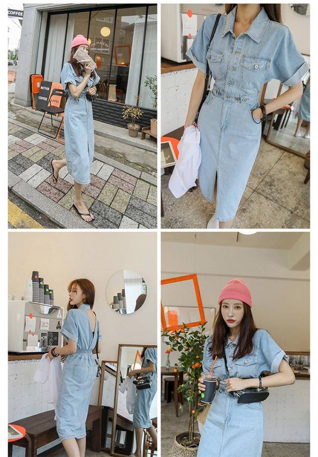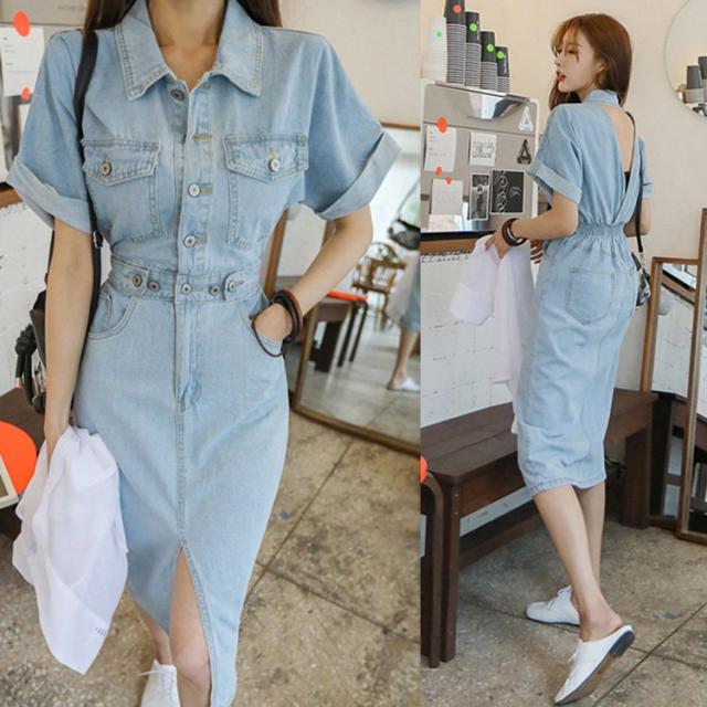 デニムワンピース レディース 40代 キレイめ マキシワンピース 春夏 半袖ワンピース 背中あき タイトスカート デニム カジュアルオシャレ 韓国風 着痩せ 大人