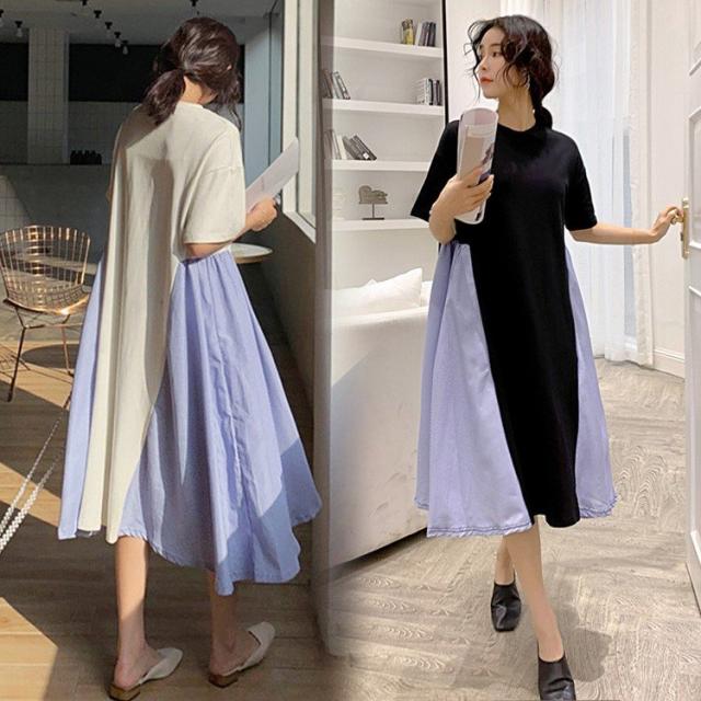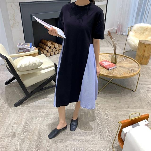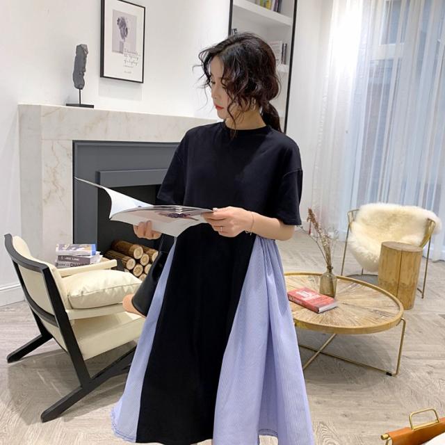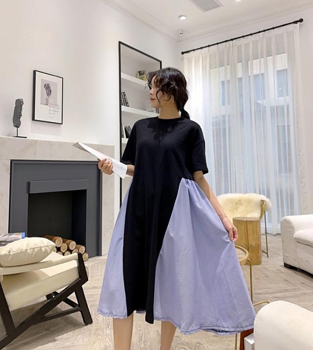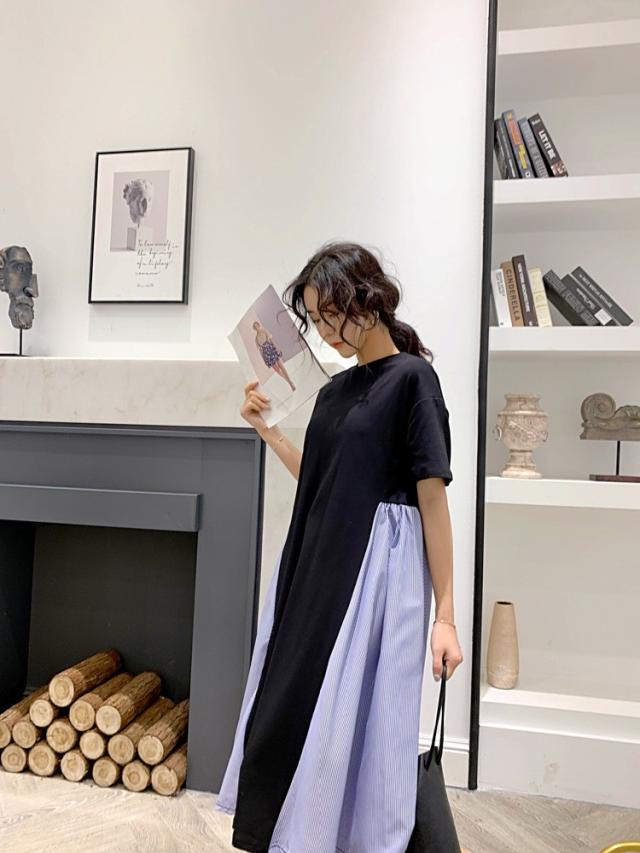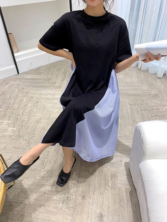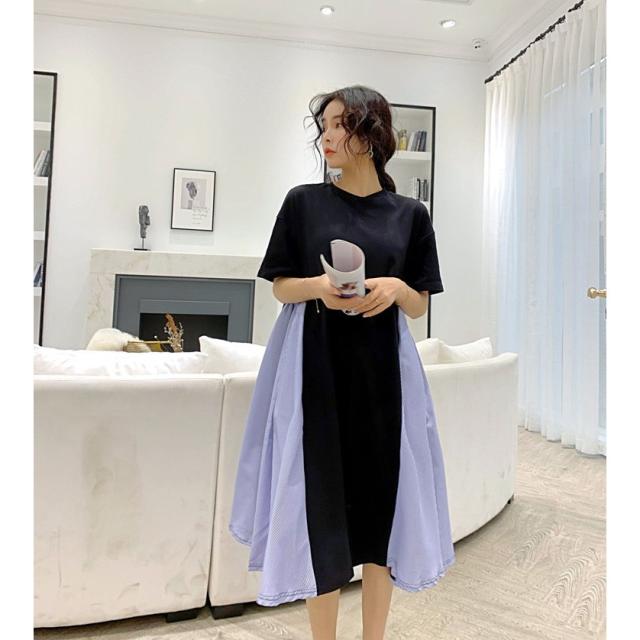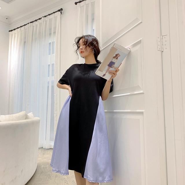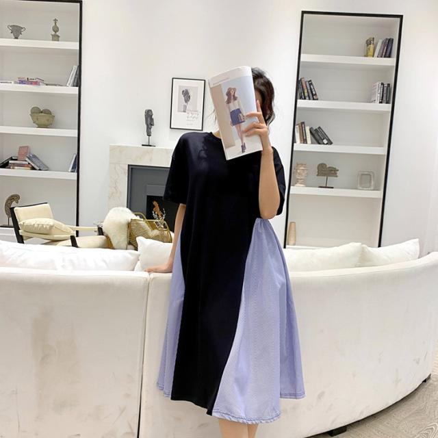 ワンピース レディース 40代 キレイめ 膝丈ワンピース 春夏 半袖ワンピース ボーダー柄切り替えフレアスカート ゆったり オシャレ 上品 着痩せ 2色 大きいサイズ
