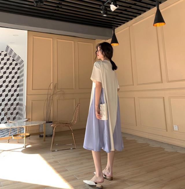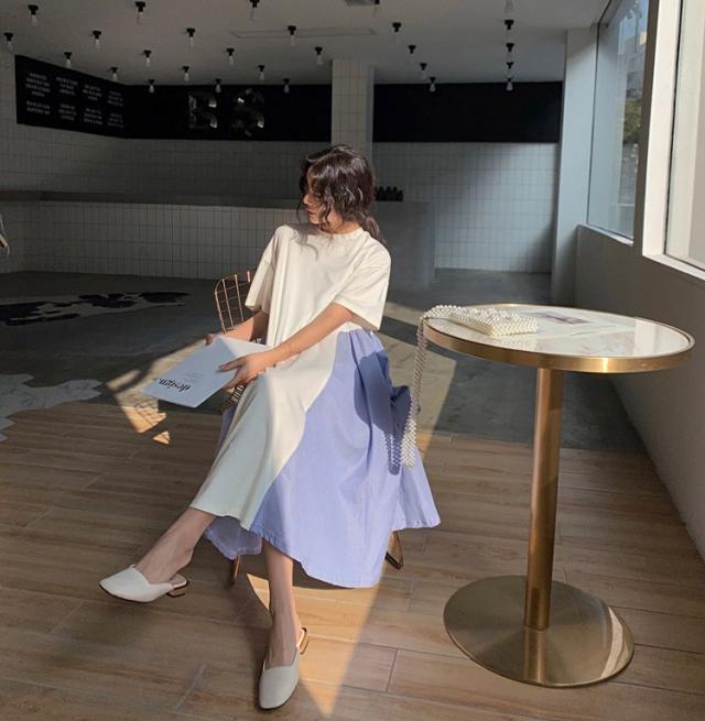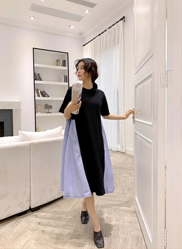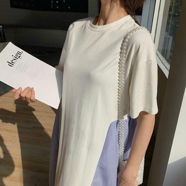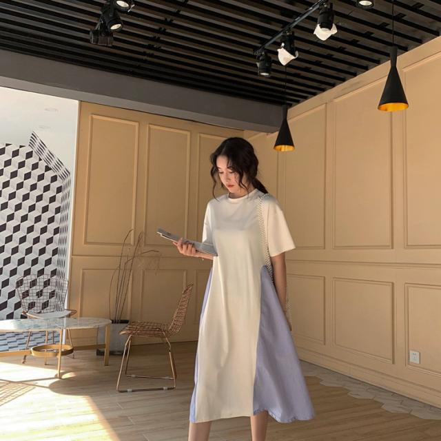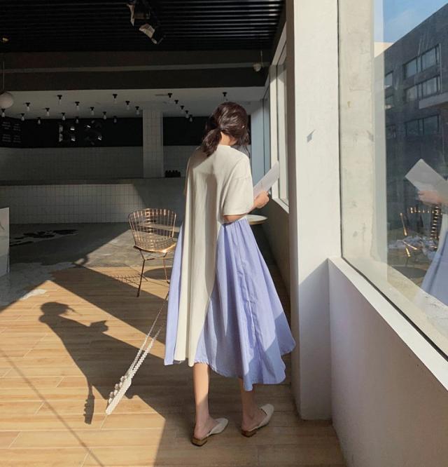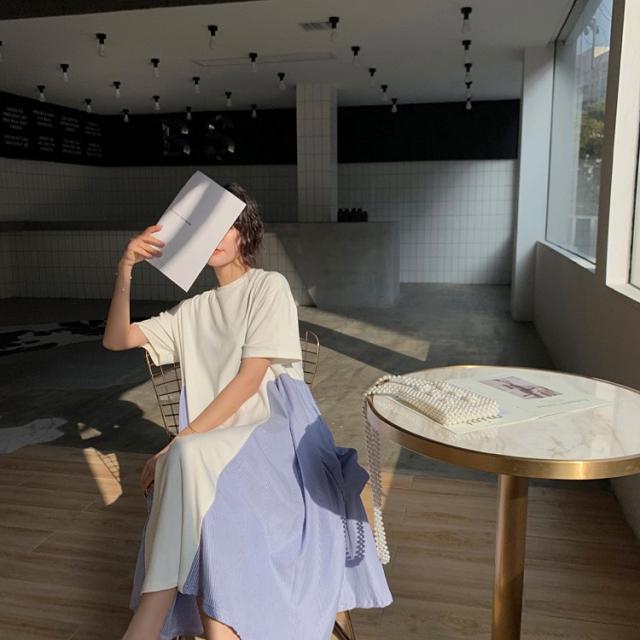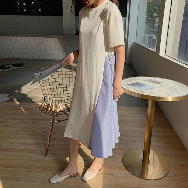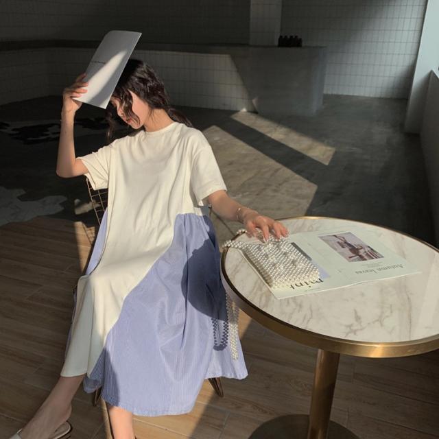 ワンピース レディース 40代 キレイめ 膝丈ワンピース 春夏 半袖ワンピース ボーダー柄切り替えフレアスカート ゆったり オシャレ 上品 着痩せ 2色 大きいサイズ