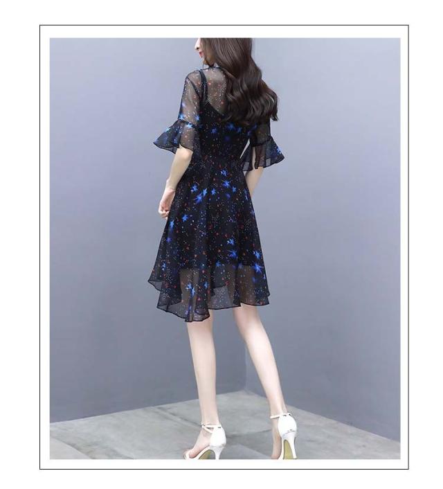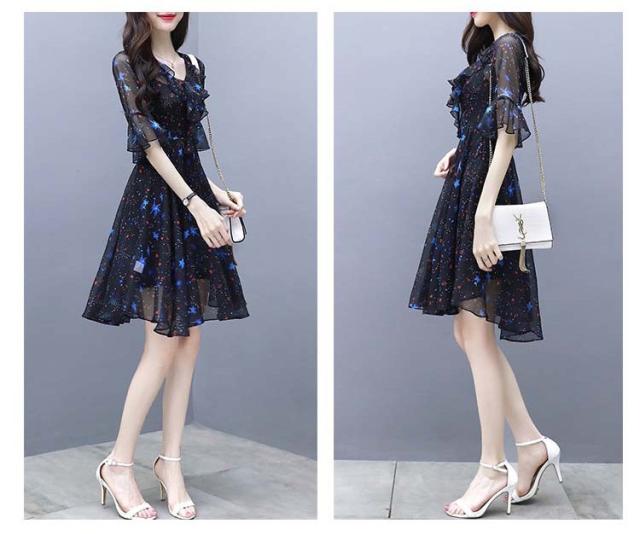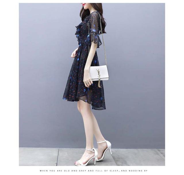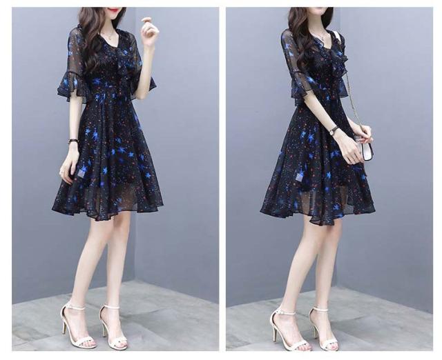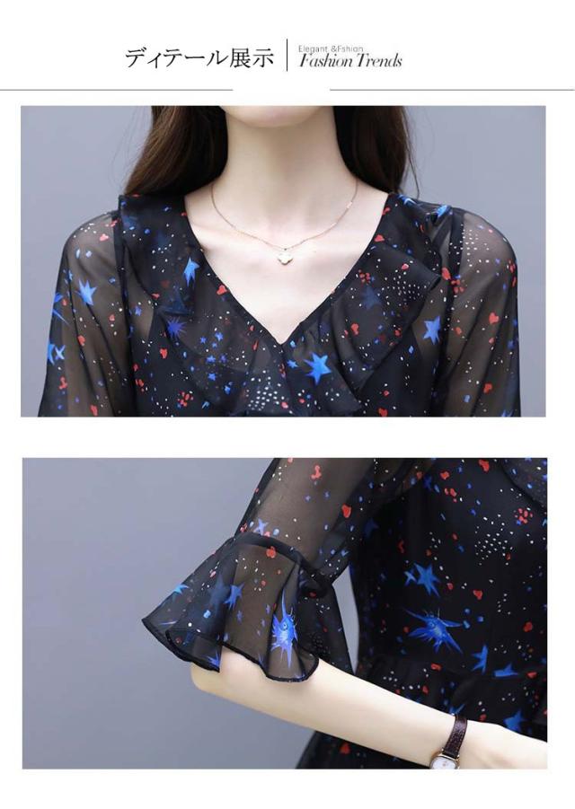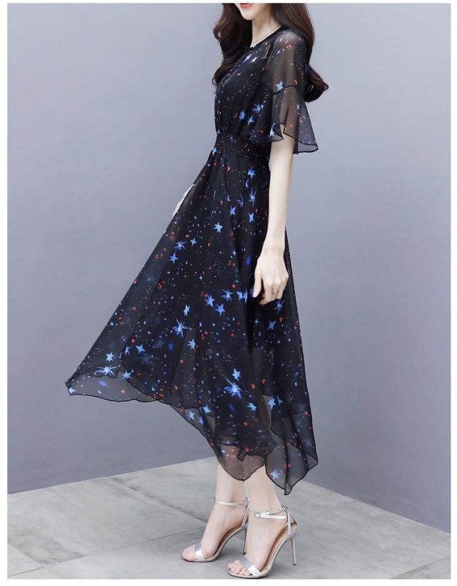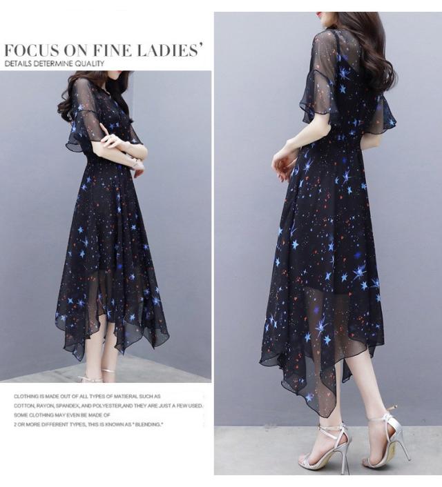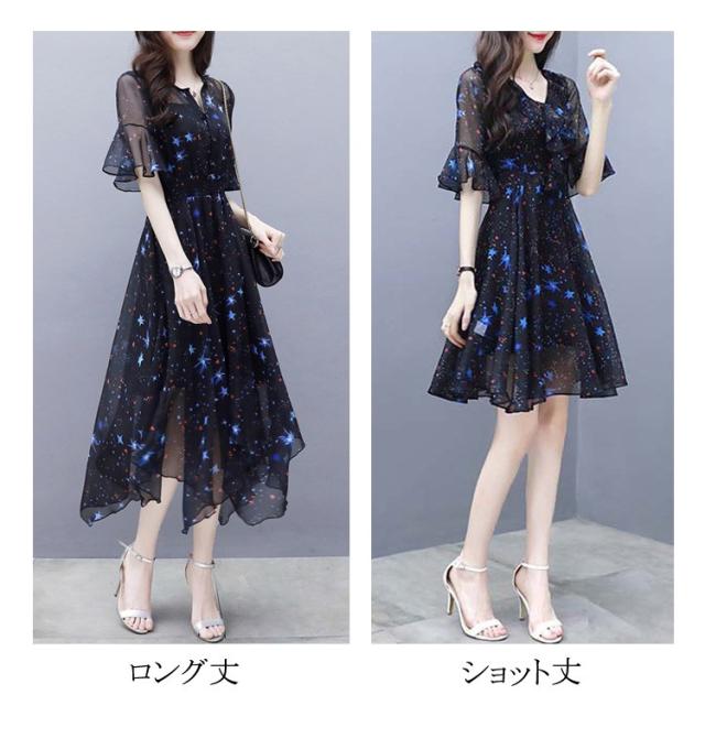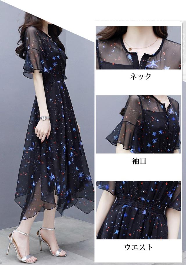 ワンピース レディース 40代 春夏 マキシ丈ワンピース きれいめ 大きいサイズ シフォン 星柄 半袖 マキシ丈ワンピ ロング 結婚式 ドレス オシャレ 上品 2WAY