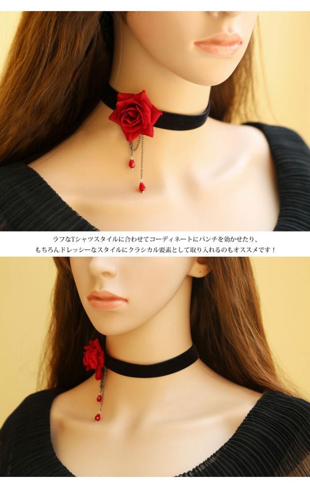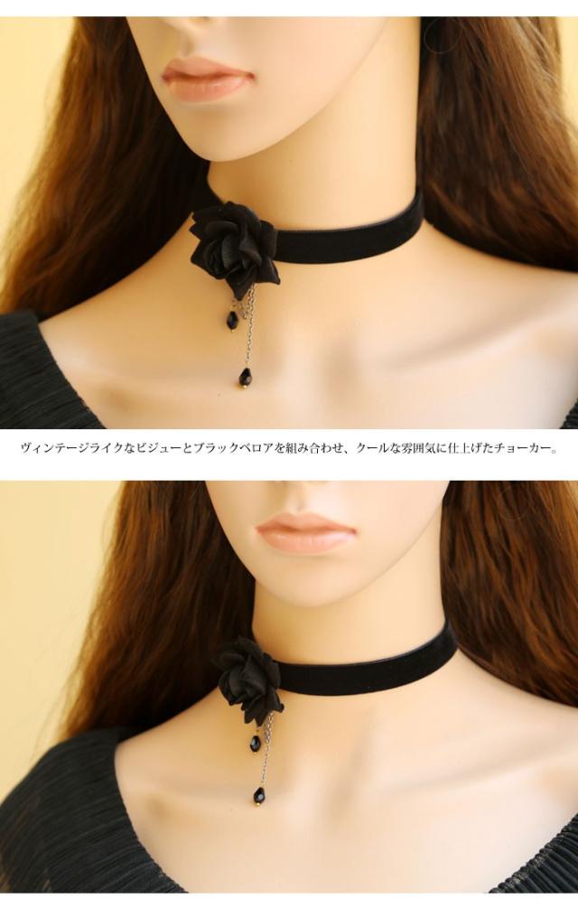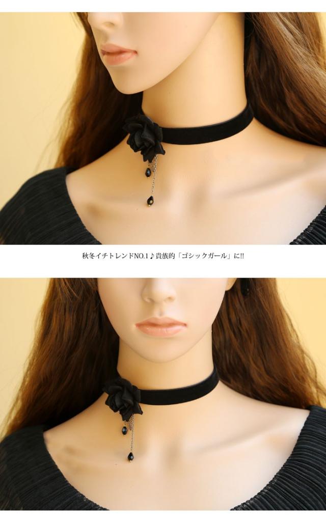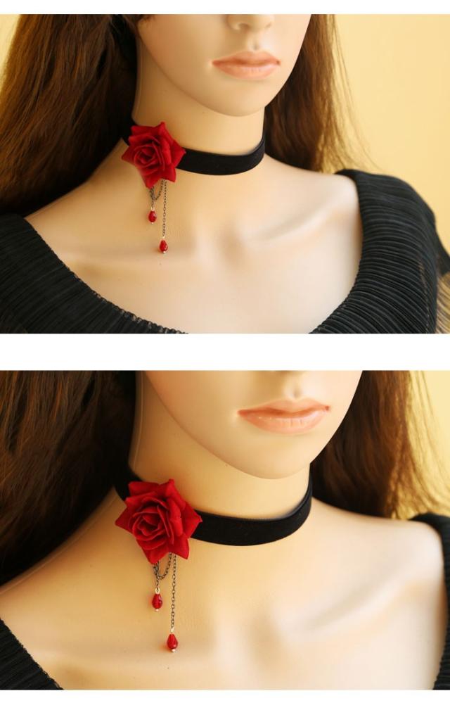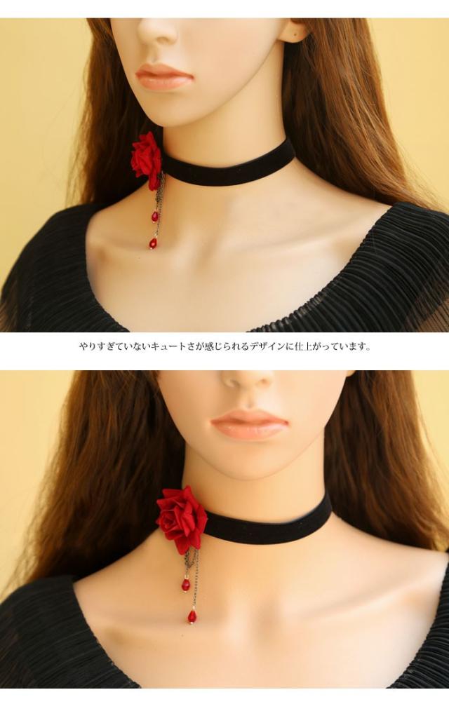 ベロアチョーカー チョーカー 薔薇 ローズ ゴスロリ チョーカー ビジュー ゴシック ロリータ ネックレス ハロウィン コスプレ パーティー