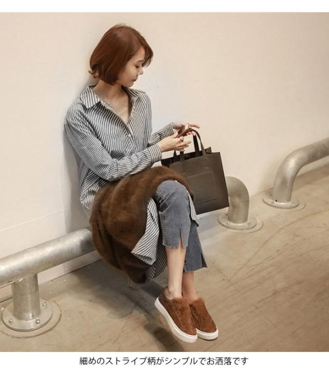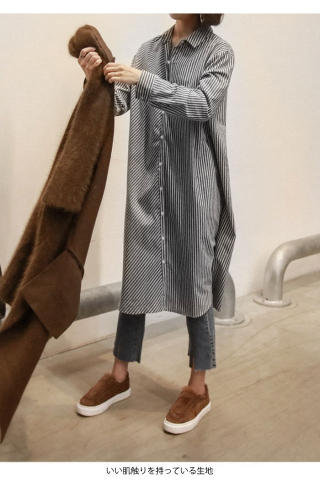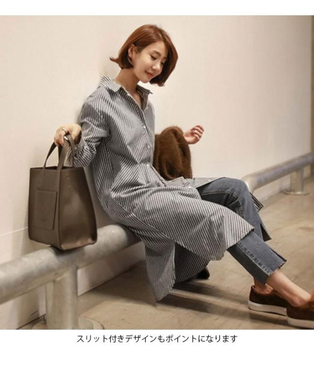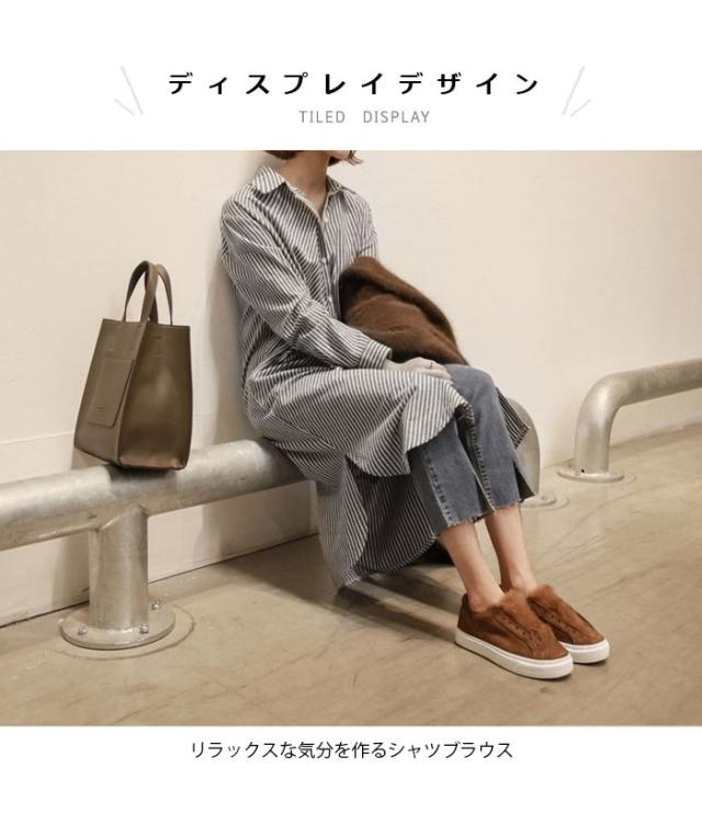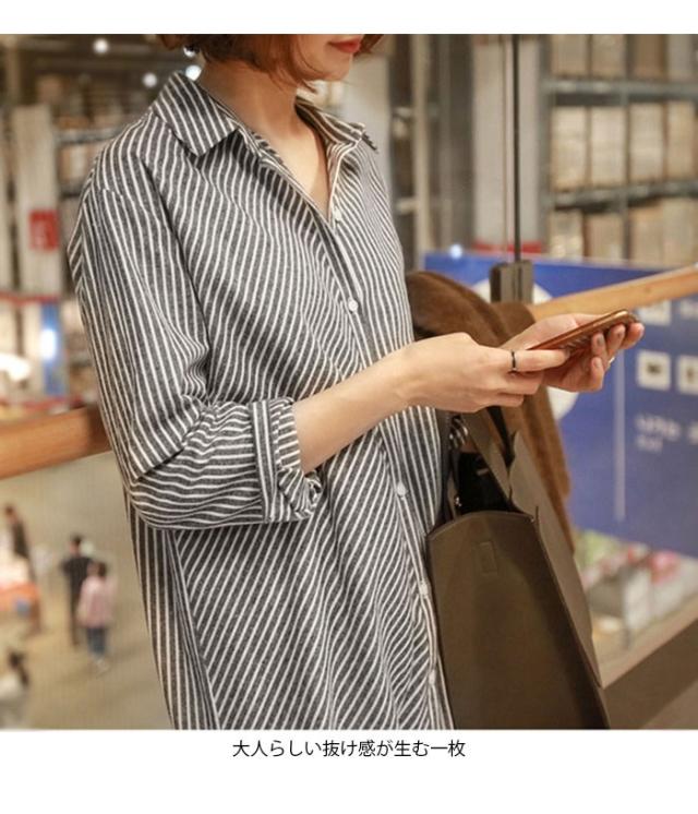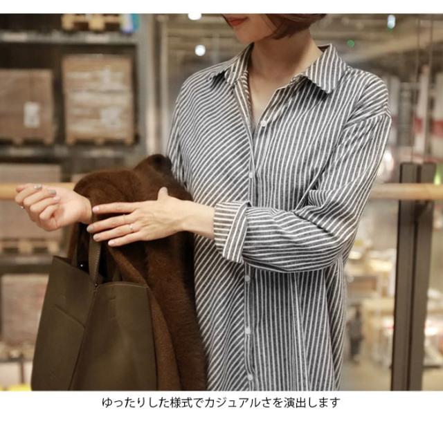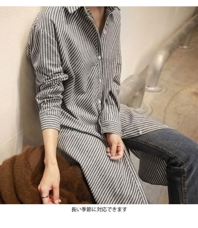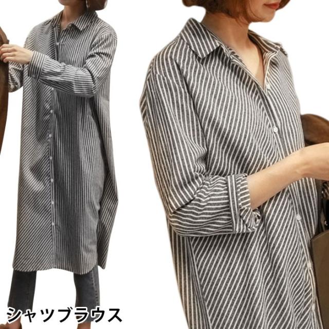 ブラウス レディース 長袖ブラウス シャツブラウス ストライプ柄 ロング丈 シンプル ルーズ お洒落 キレイめ 体型カバー 普段着 トップス 春新作