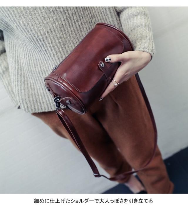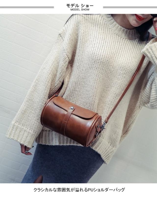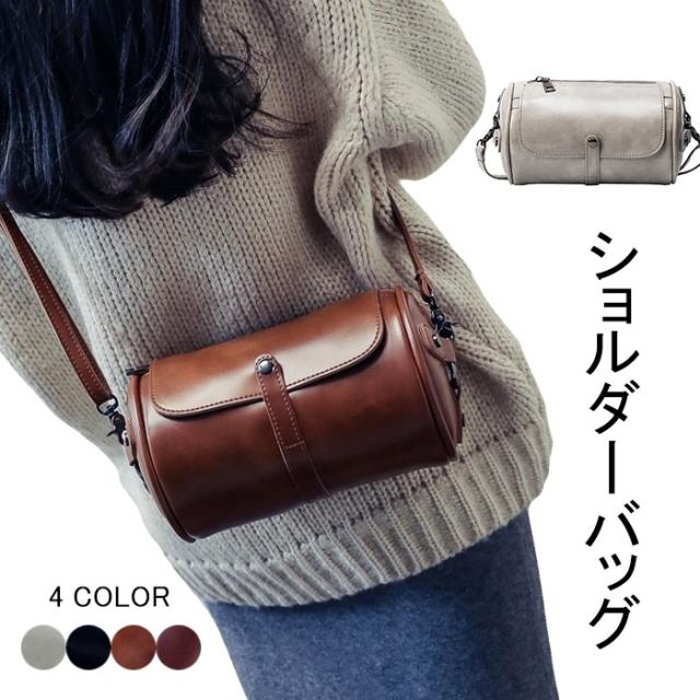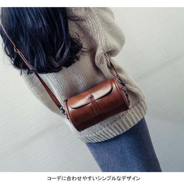 ショルダーバッグ レディース ミニバッグ PUレザー フェイクレザー レザーバッグ 丸い 筒型 立体感 お洒落 クラシカル コンパクト キュート