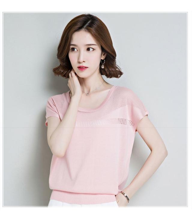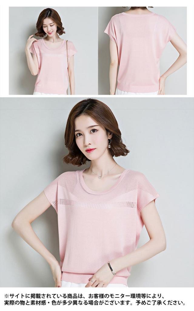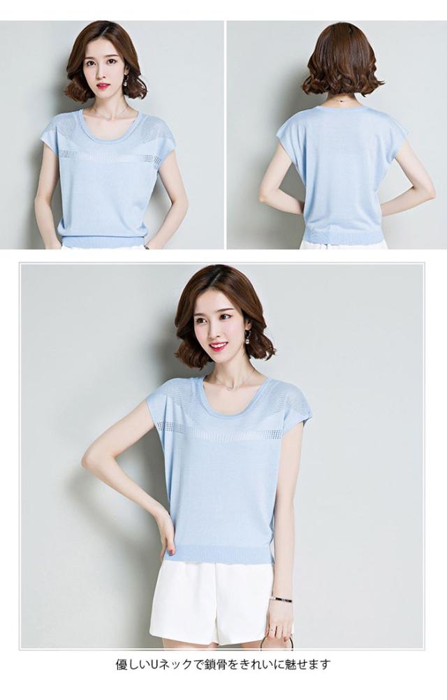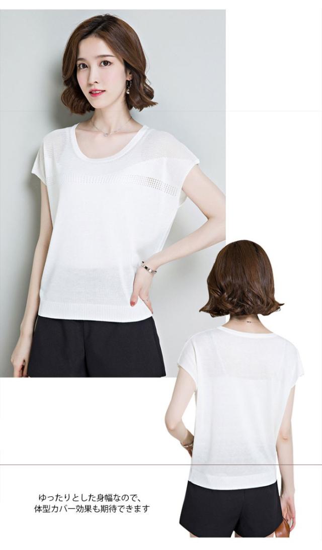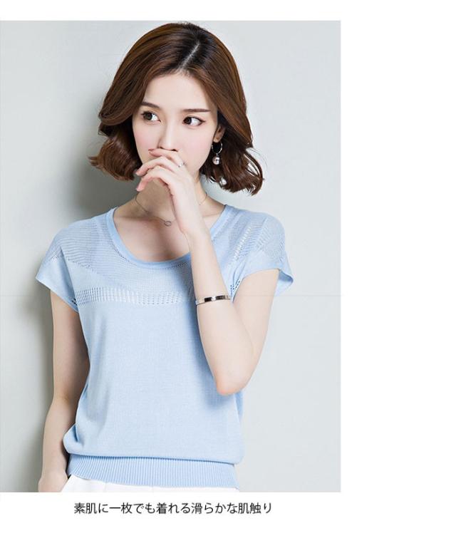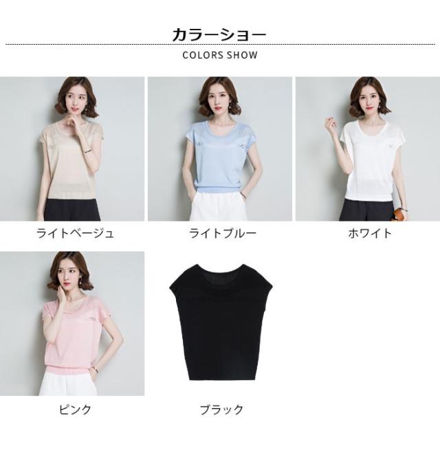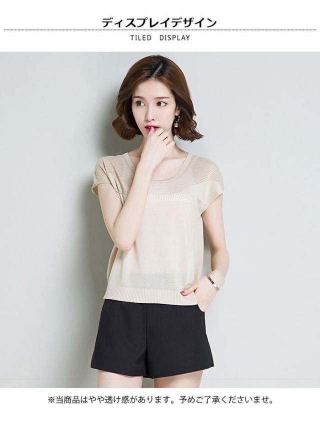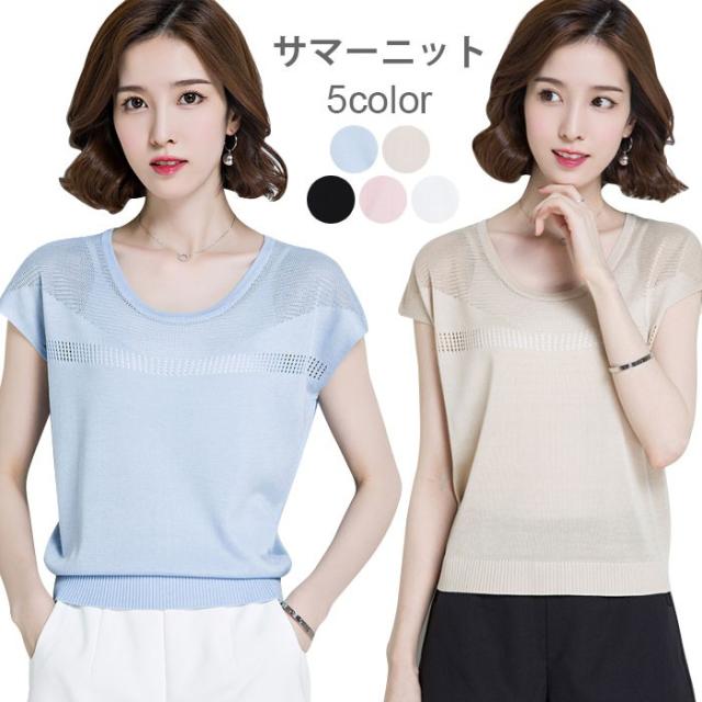 サマーニット レディース ニットトップス 無地ニット 半袖ニット Uネック リブニット 透かし編み 透け感 ゆるニット プルオーバー トップス お洒落