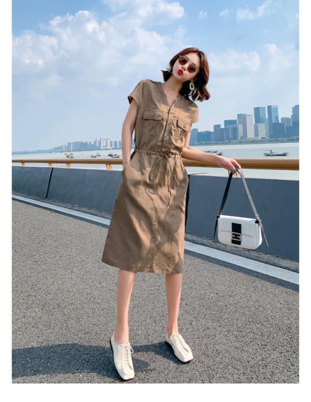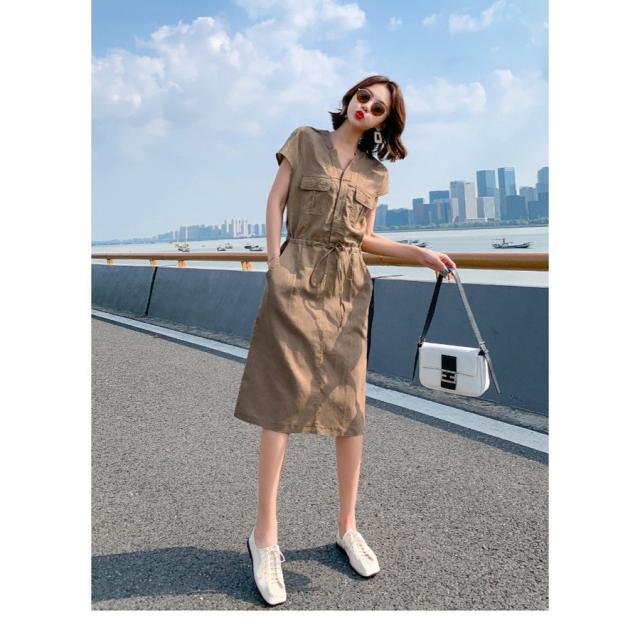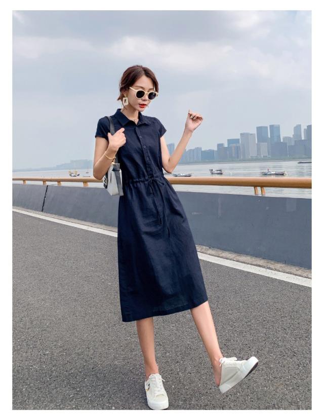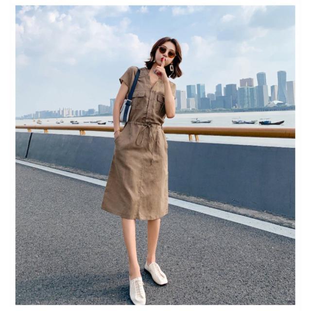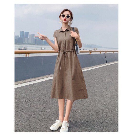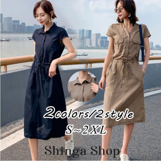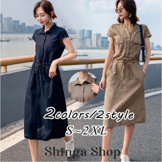 シャツワンピース レディース 40代 きれいめ マキシワンピース 春夏 綿麻 リネン 半袖 フレア おしゃれ 着痩せ 大きいサイズ 韓国風 ゆったり 30代 50代