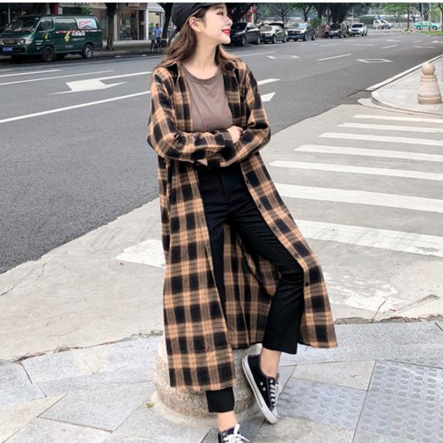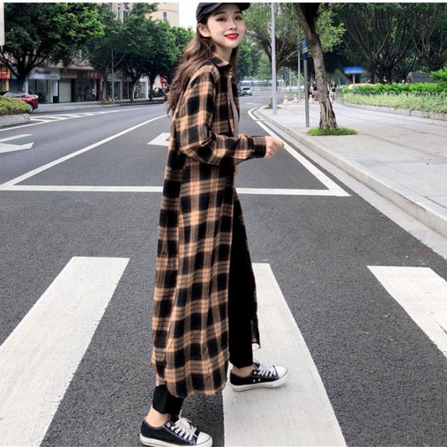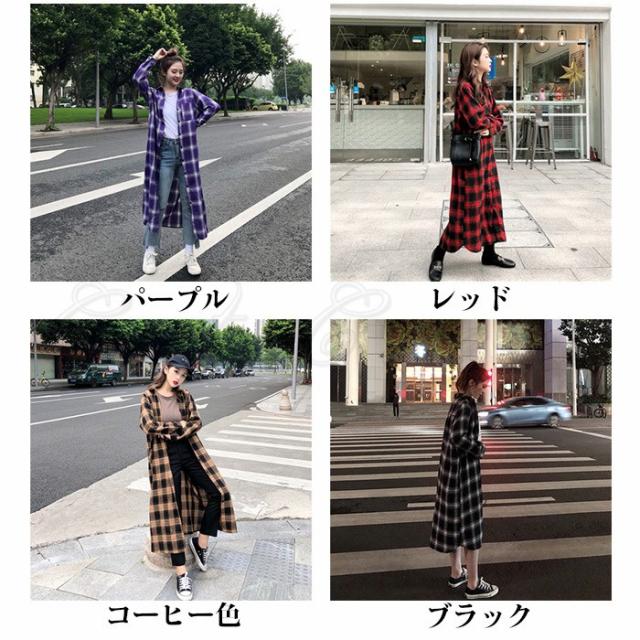 ロングシャツ レディース 長袖 チェック柄 超ロング シャツワンピース シャツコート ライトアウター トップス 前開き 羽織 春秋 おしゃれ