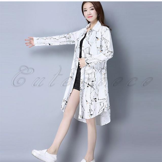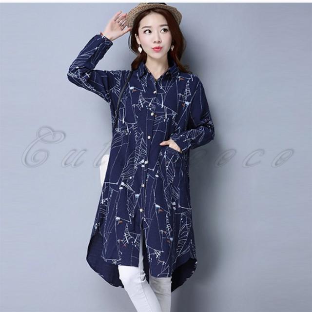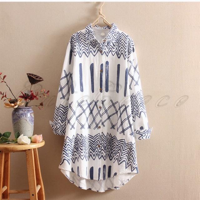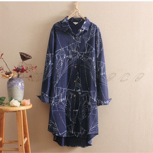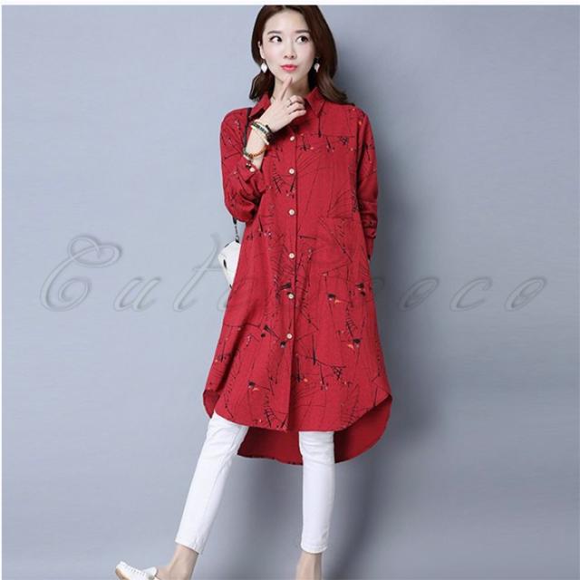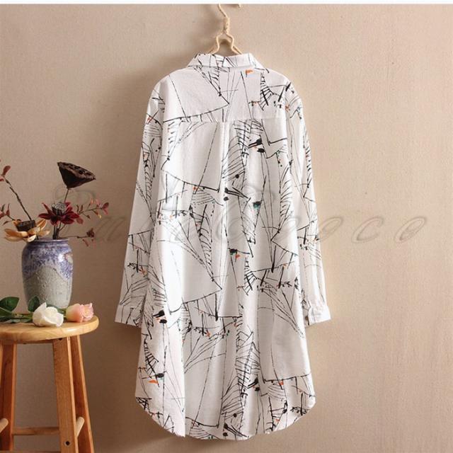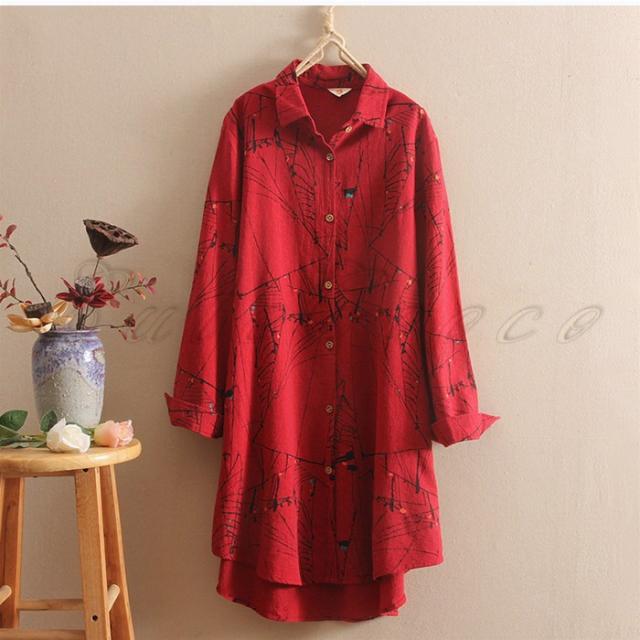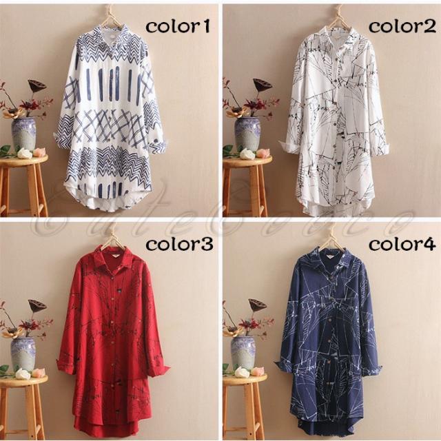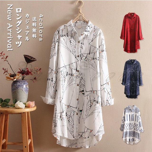 ロングシャツ 長袖 レディース 綿麻 チュニック プリント シャツワンピース シャツコート カジュアル 薄手 きれいめ 春秋 おしゃれ