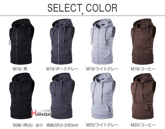 パーカー 薄手 メンズ ジップパーカー タンクトップ ノースリーブ ジップアップ 無地 スポーツ 羽織 夏服