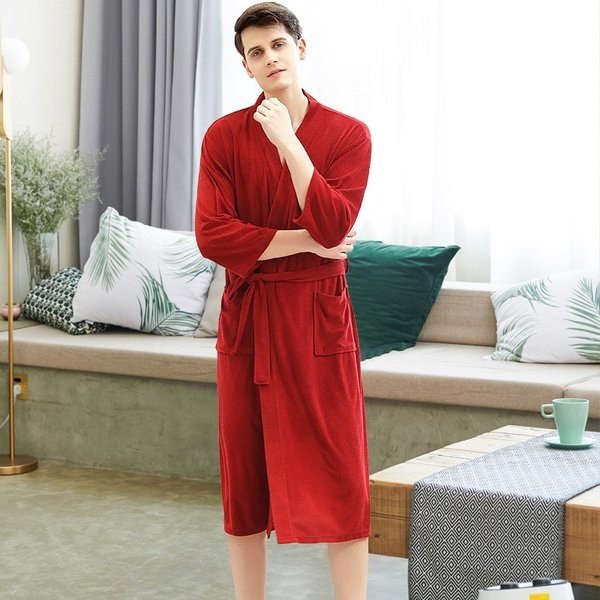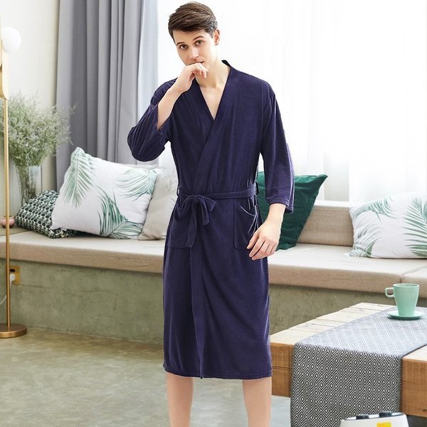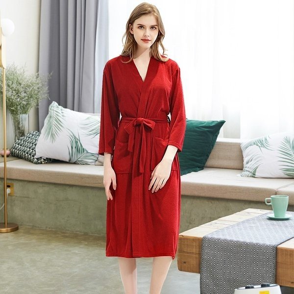 バスローブ 春夏 レディース メンズ ホテル パジャマ ナイトガウンローブ 男女兼用 膝下 ルームウェア 部屋着 無地 カップル ペアルック 大きい