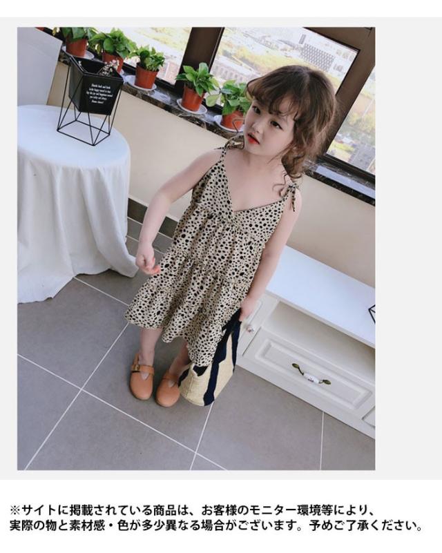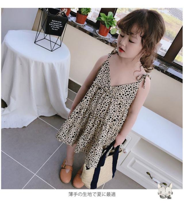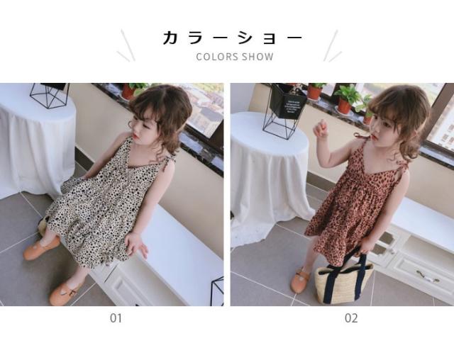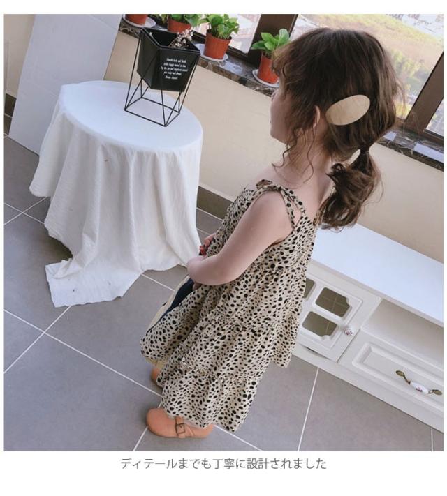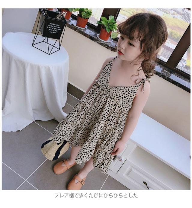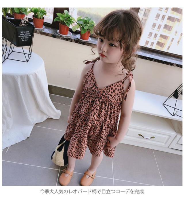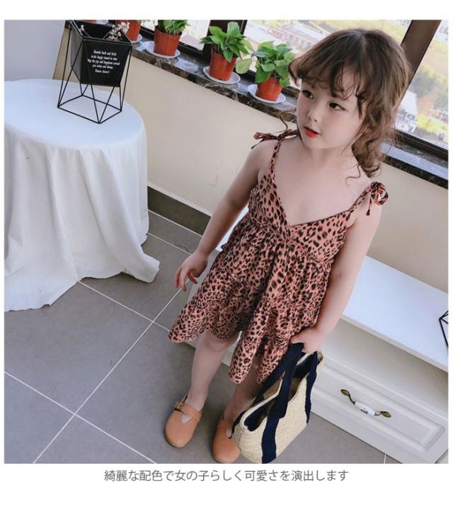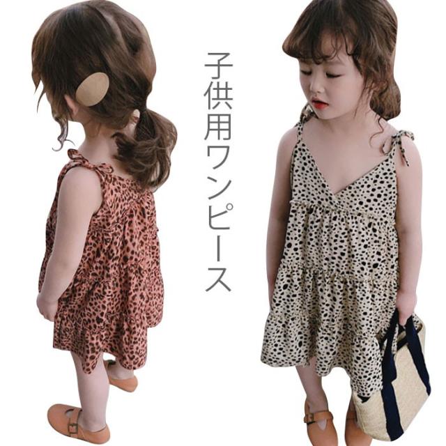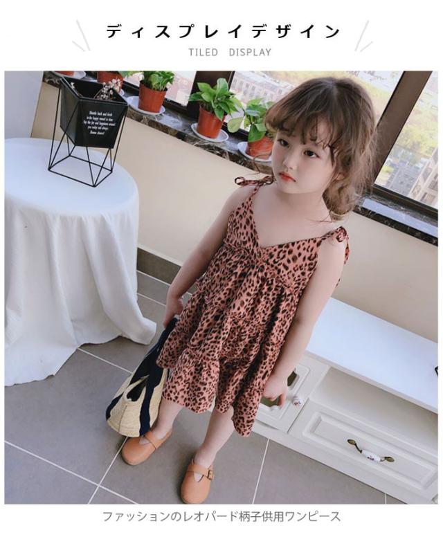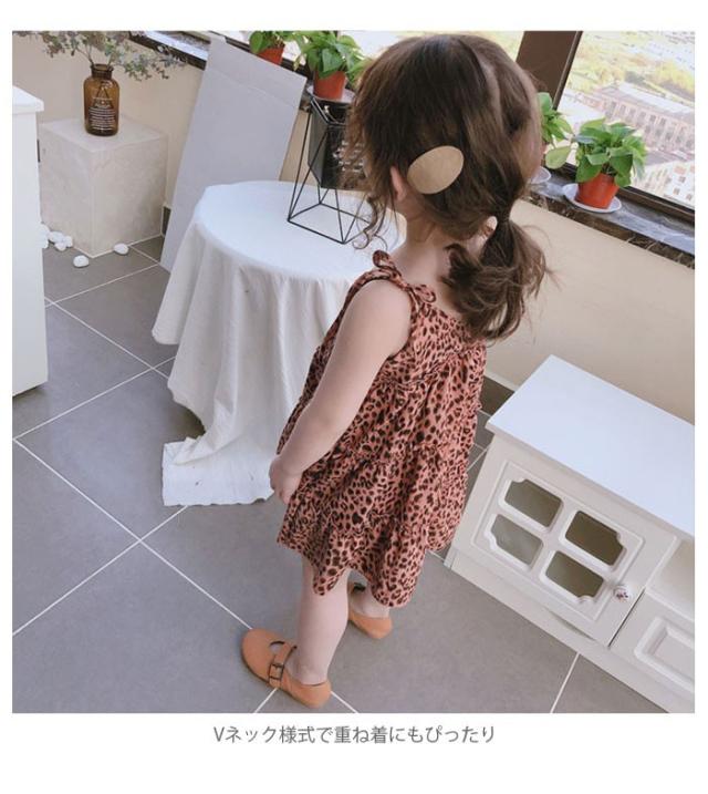レオパード 子供服 女の子 ワンピース 膝丈ワンピース ジャンパスカート アニマル柄 Vネック フレア裾 可愛い キレイめ お洒落 夏新作