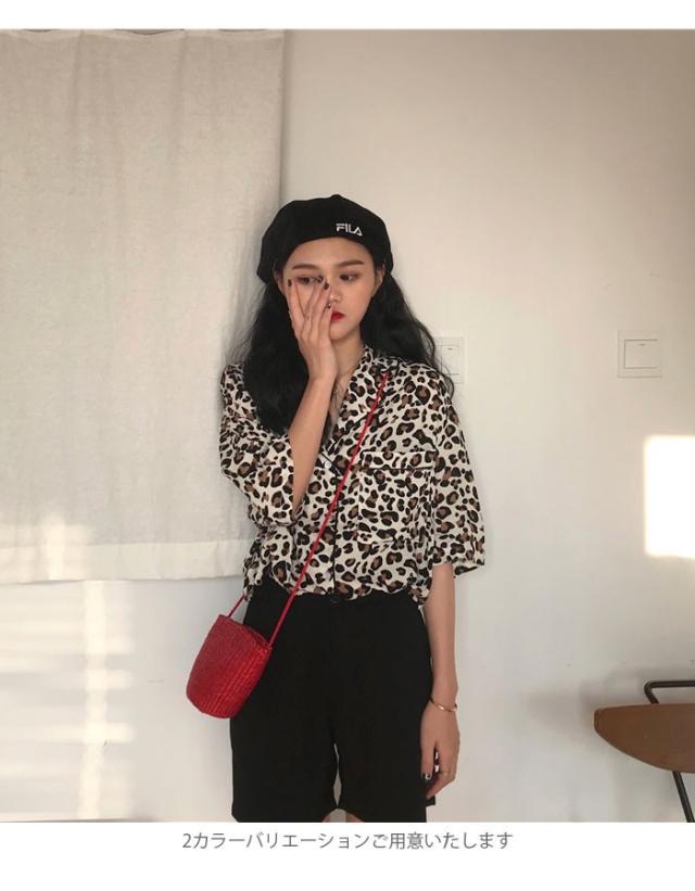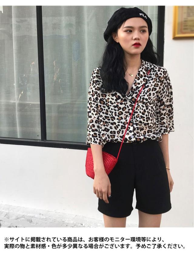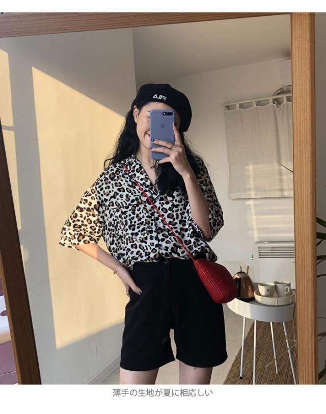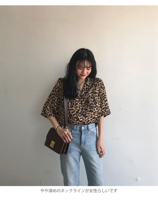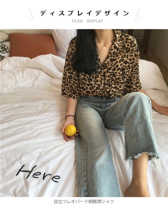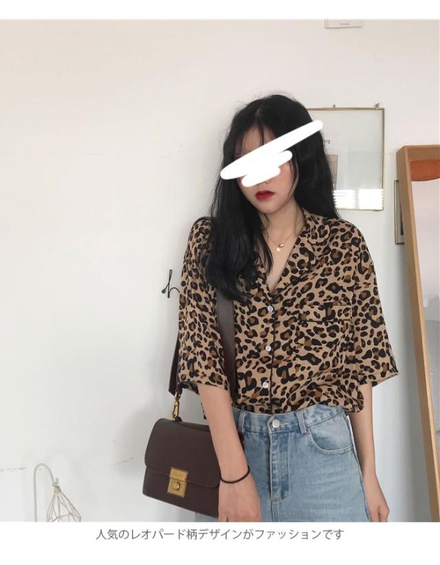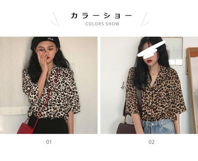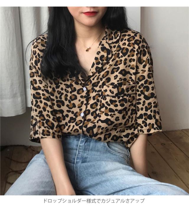 レオパード レディース ブラウス 五分袖ブラウス シャツブラウス ボタンシャツ 開襟 ドロップショルダー 個性的 シンプル 上品 カジュアル 夏新作