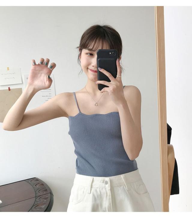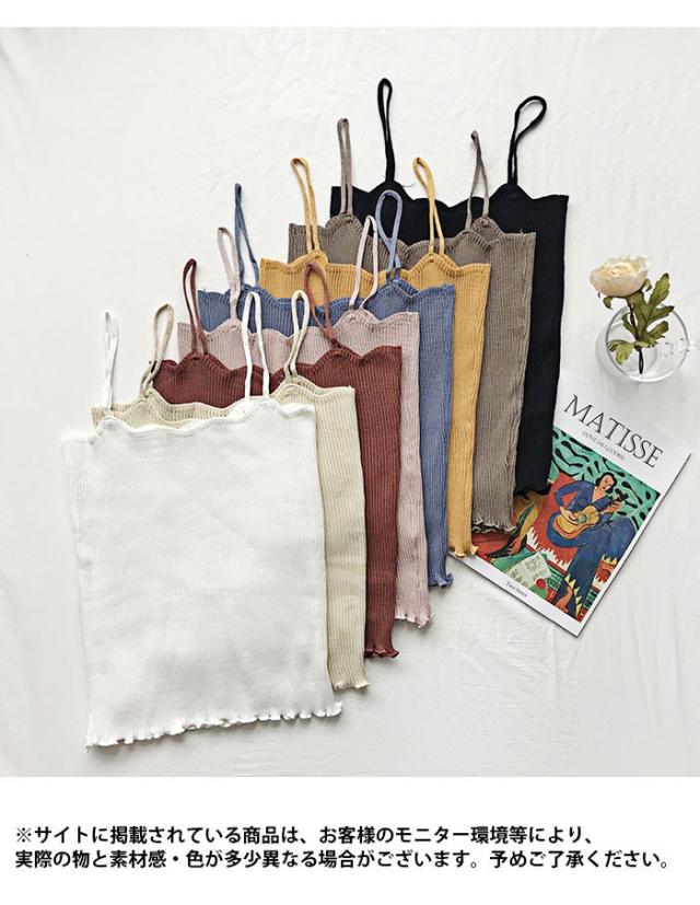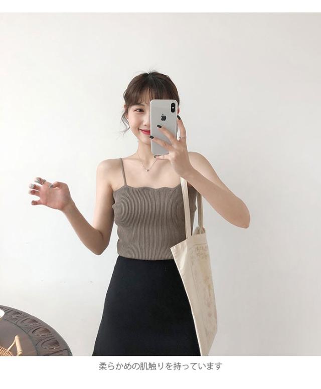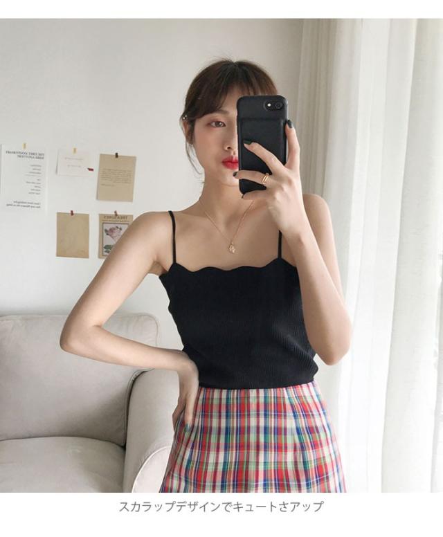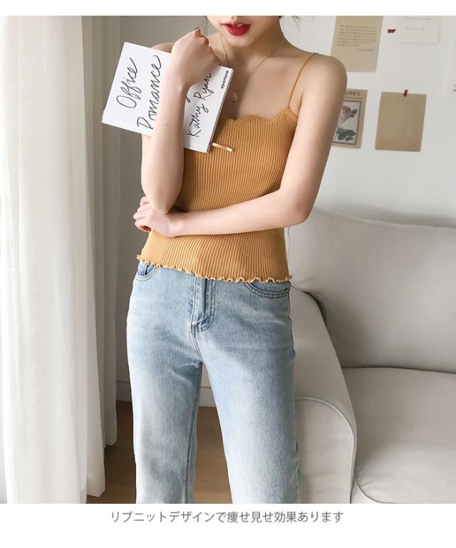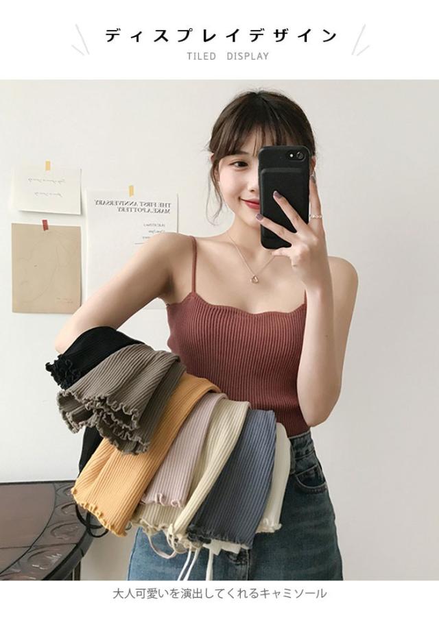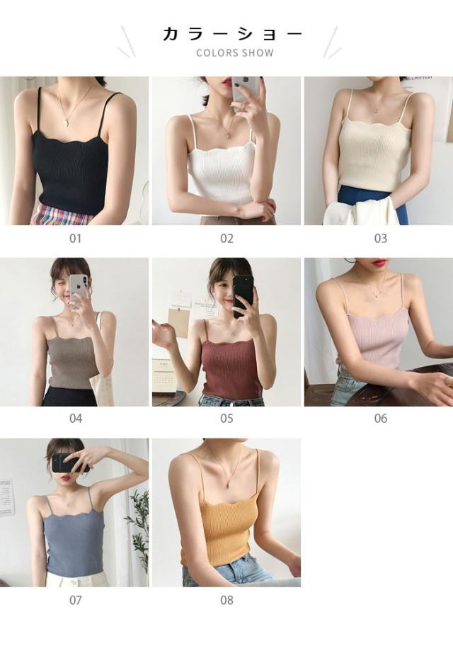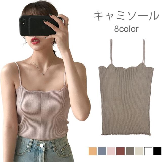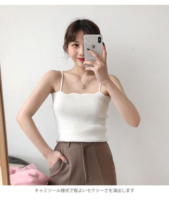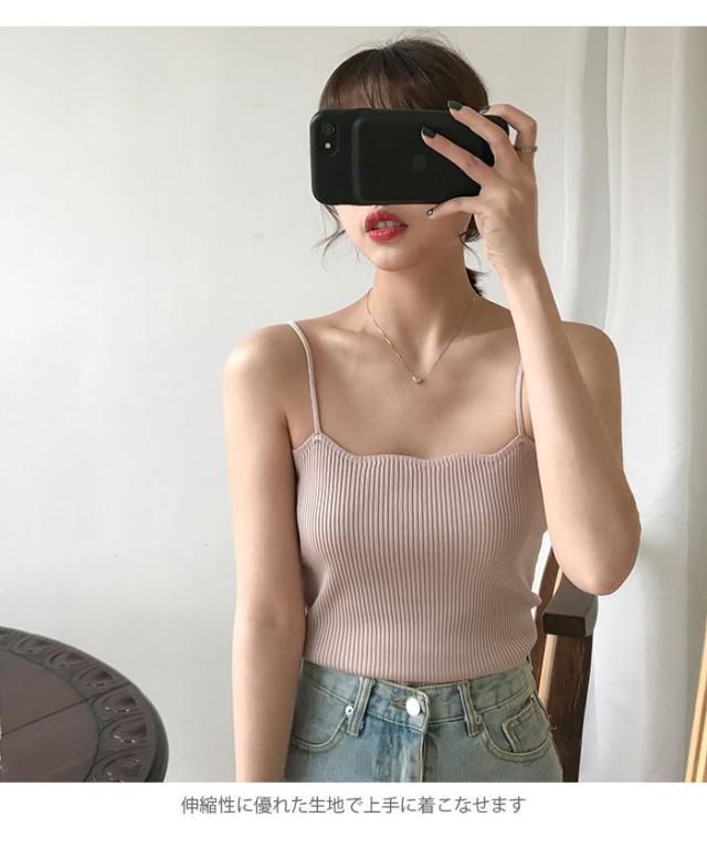 サマーニット レディース ニットキャミソール リブニット キャミソール 無地ニット ニットトップス スカラップ 伸縮性 セクシー 大胆 キレイめ 夏新作