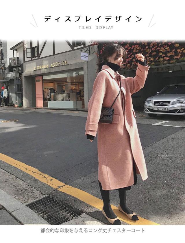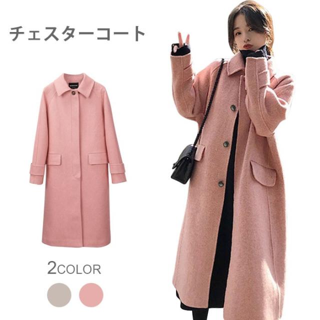 チェスターコート レディース ロングコート ロング丈 長袖 チェスター ラシャ風 折り襟 厚手 ゆったり 体型カバー 大人 こなれ感 お洒落 秋冬 秋新作