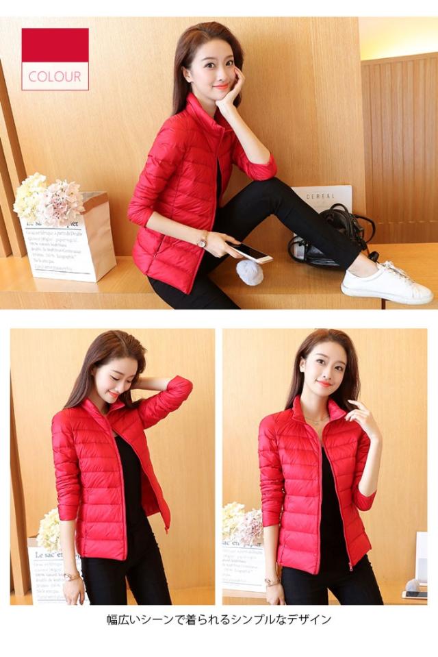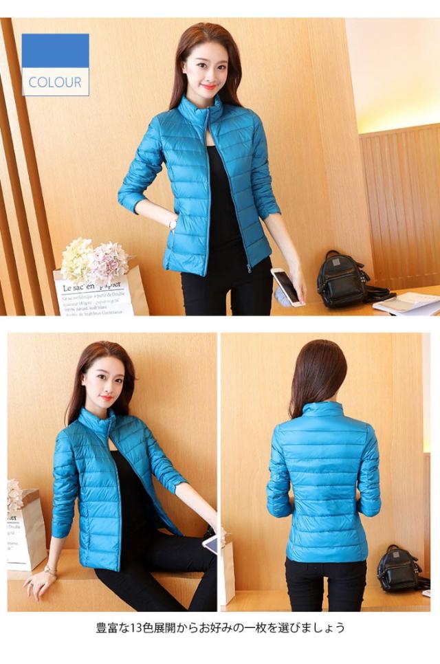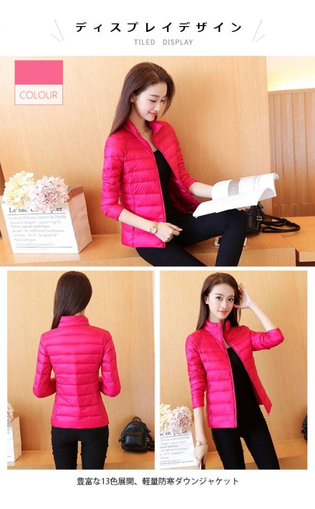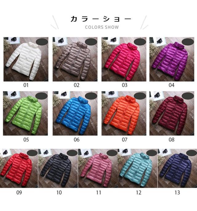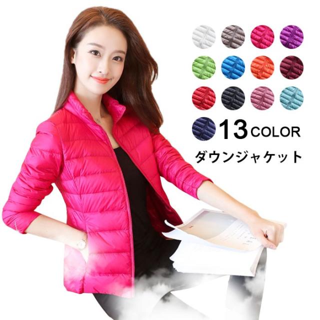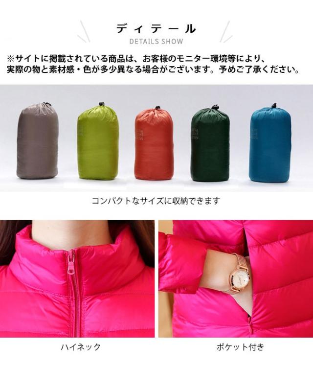 ダウンジャケット レディース ダウンコート 軽量 防寒 コンパクト ミドル丈 ハイネック ポケット付き 無地 13色 お洒落 シンプル カジュアル アウター
