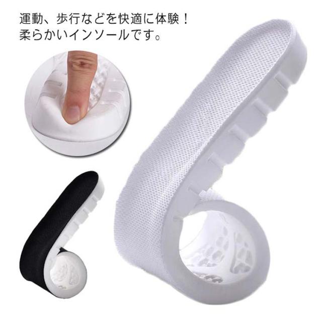 | 運動、歩行などを快適に体験!柔らかいインソールです。 包み込むようなデザインがかかとをサポートし、土踏まずのところには足裏のアーチにぴったりとフィットできます。 高密度素材を採用し、衝撃を完全に吸収して足のストレスを軽減します、足の痛みを和らげます。 柔軟性がありますので、長時間、靴を履いても疲労感を緩和してくれます。 軽量なので、アウトドア、旅行などの場合にも使えます。 | |