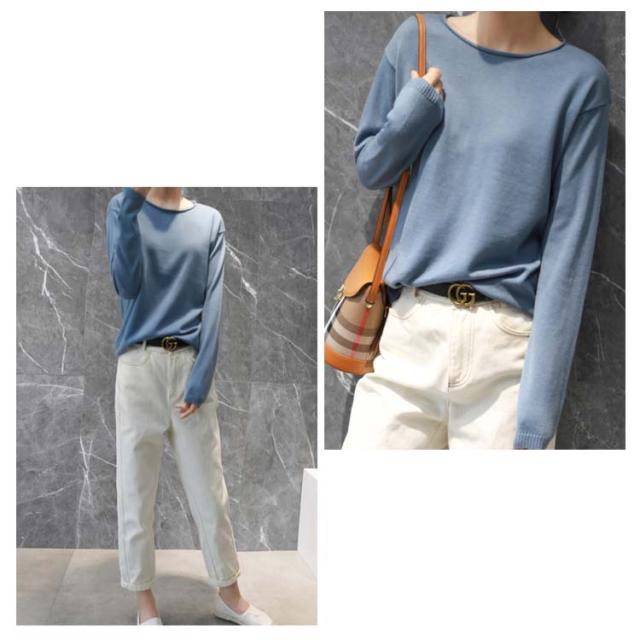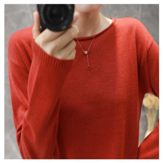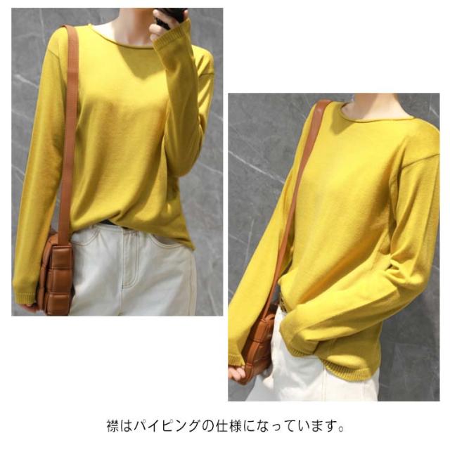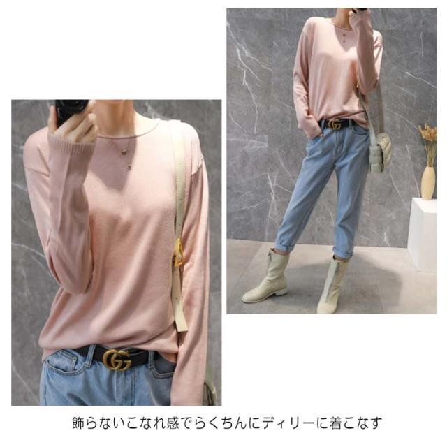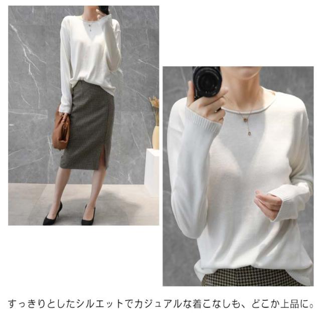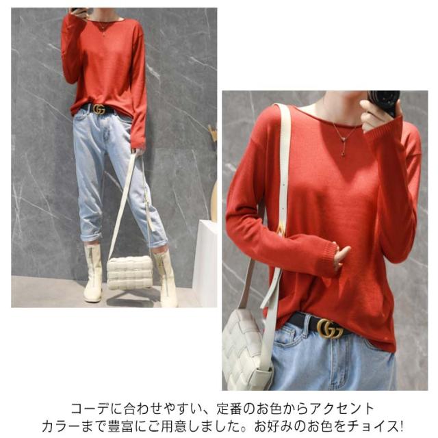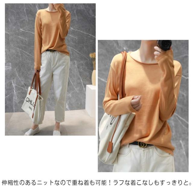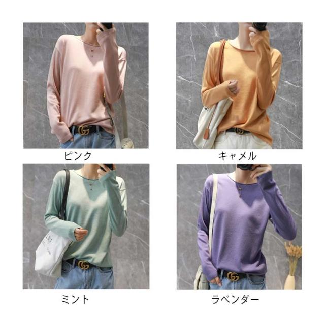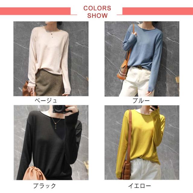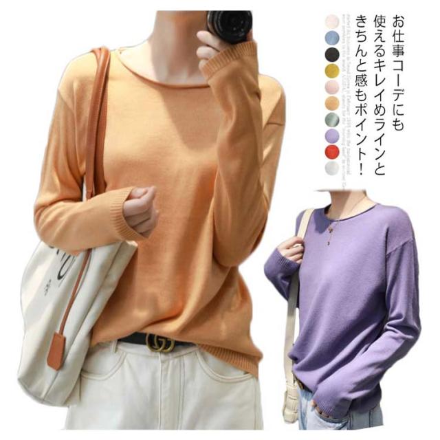 ニット tシャツ レディース 長袖 肌触り 送料無料 綿100% トップス セーター コットン 大きいサイズ S-2XL コットンニット クルーネック 全10色