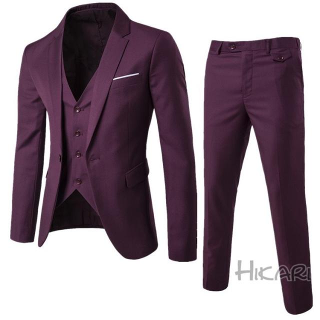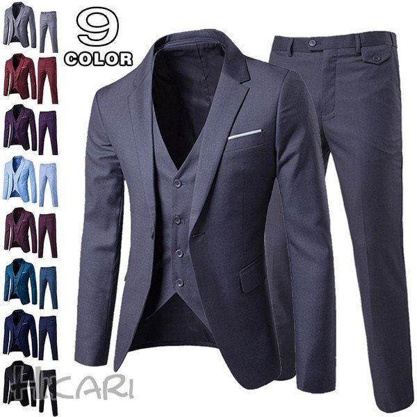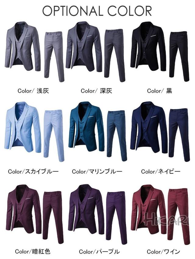 スリーピーススーツ ビジネススーツ メンズ スーツ 紳士服 スリムスーツ 3ピーススーツ スーツセット 1つボタン 卒業式 就職 新生活