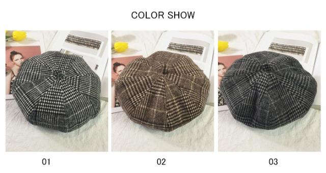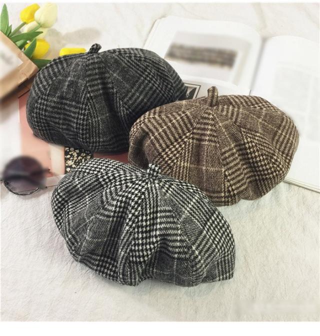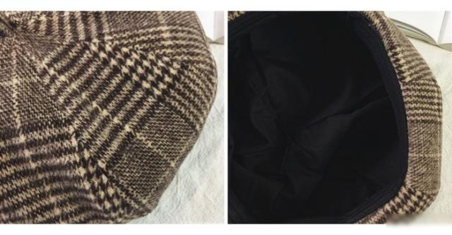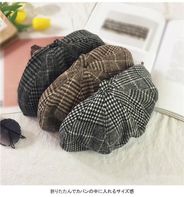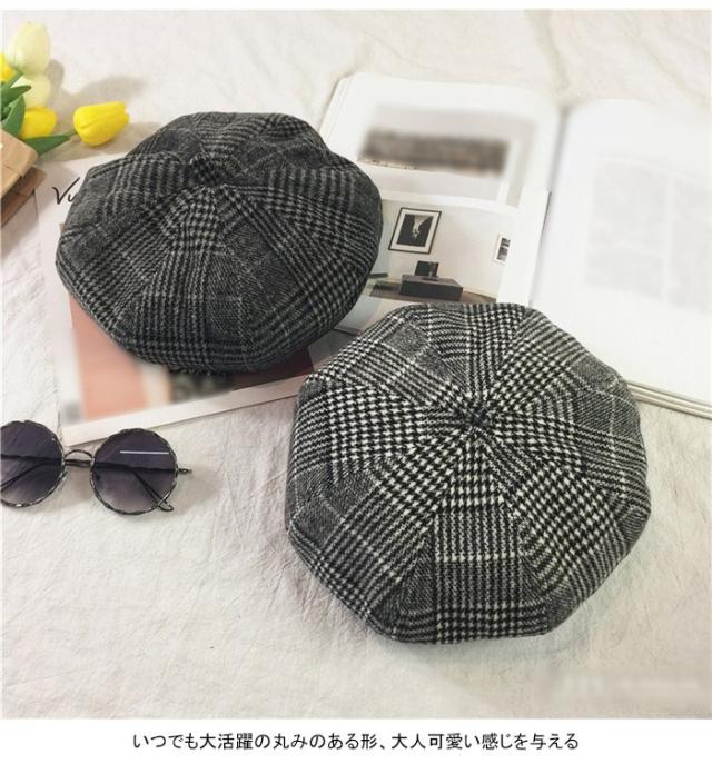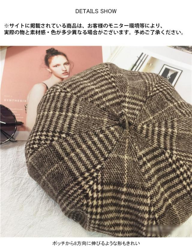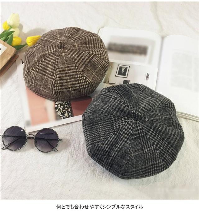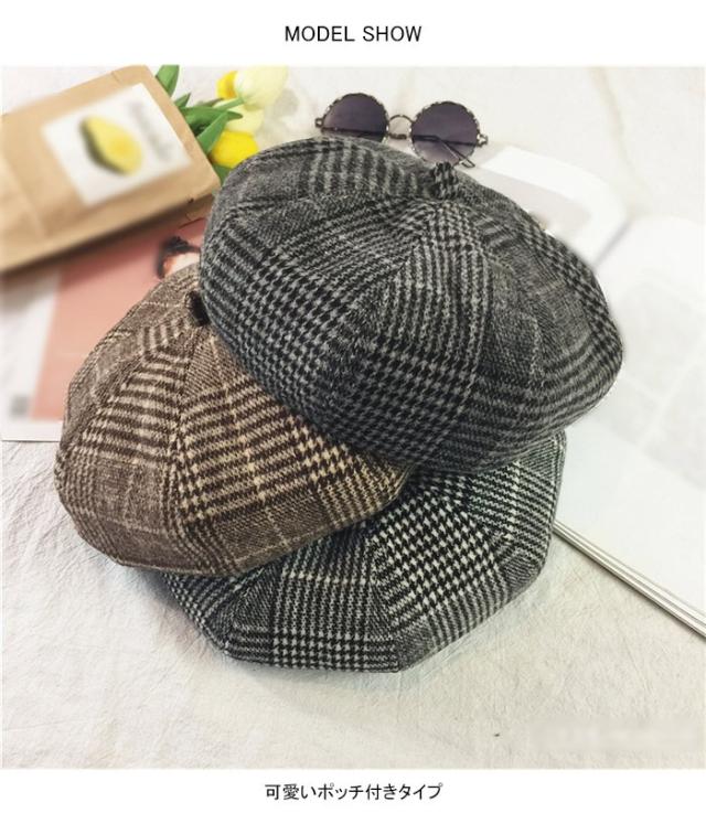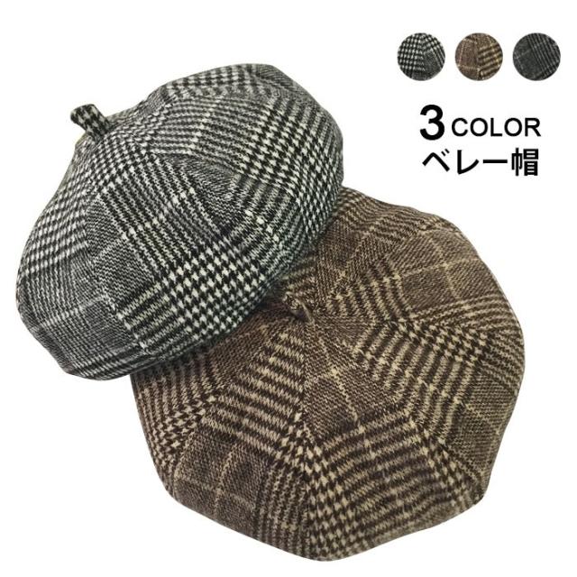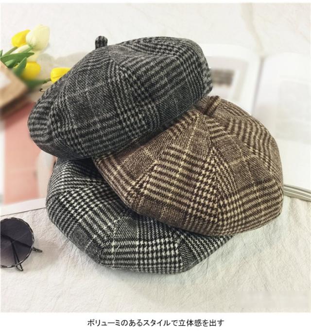 グレンチェック レディース ベレー帽 ハット 帽子 ポッチ付き チェック柄 裏地付き 厚手 ボリューミ 丸み お洒落 カジュアル キレイめ 可愛い