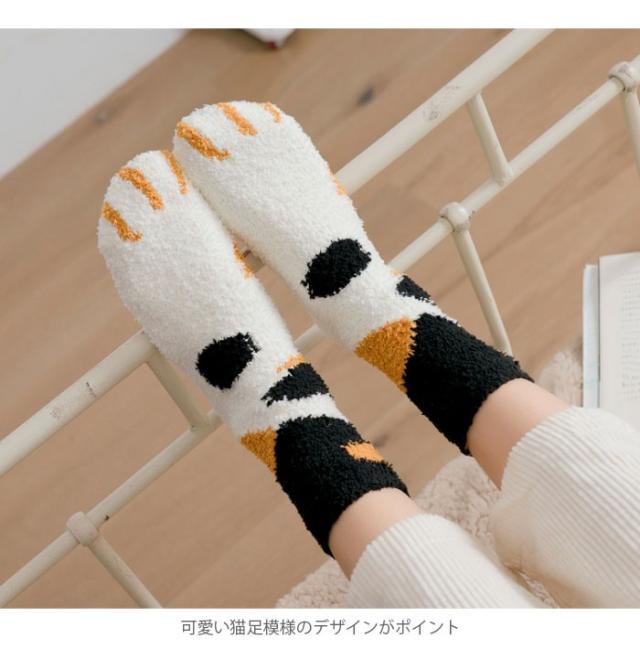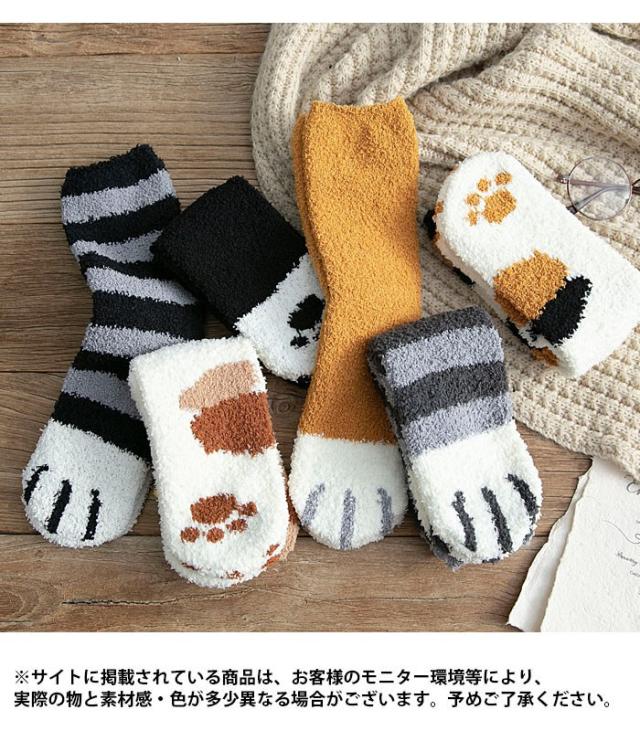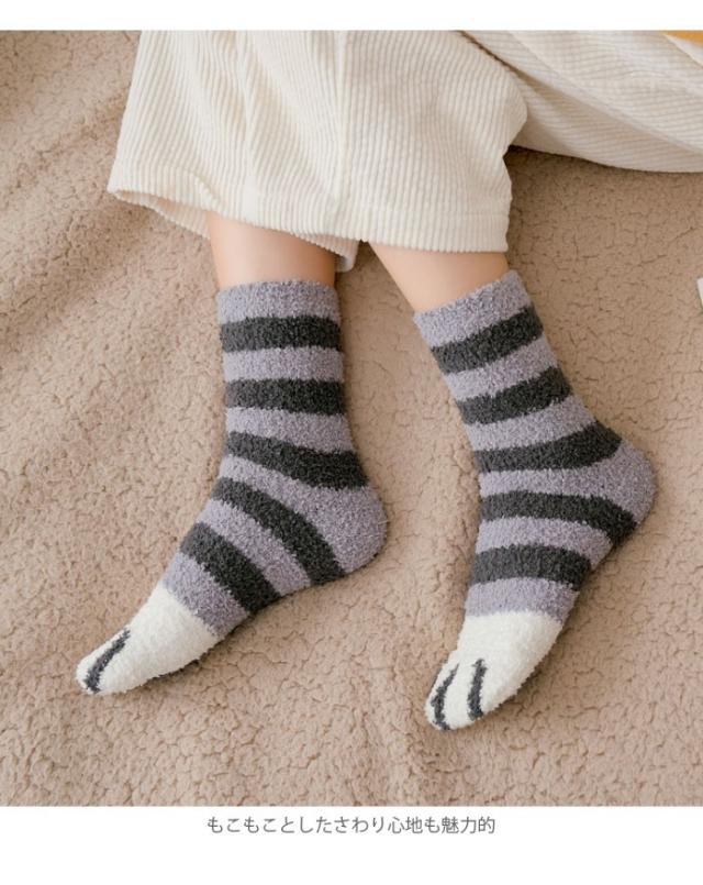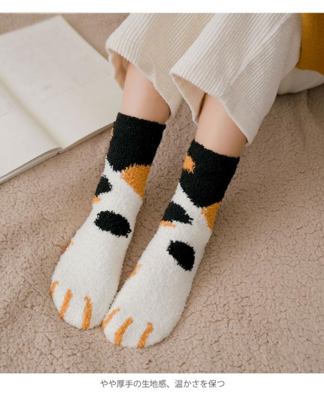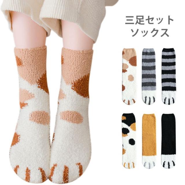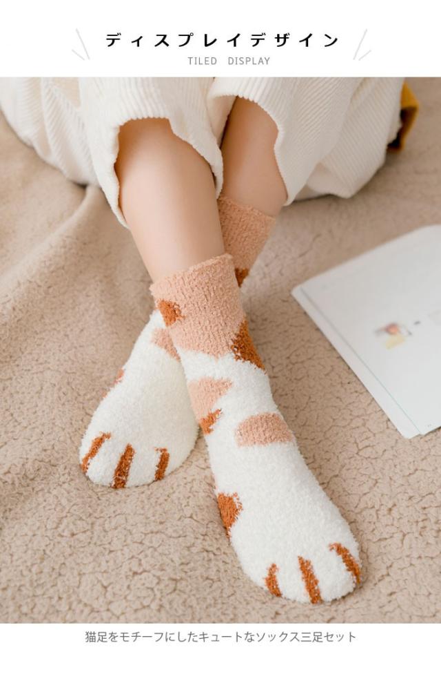 三足セットソックス レディース ソックス 三足入りセット 靴下 ショートソックス 猫足 もこもこ 可愛い あったか 暖かい 厚手 冬新作