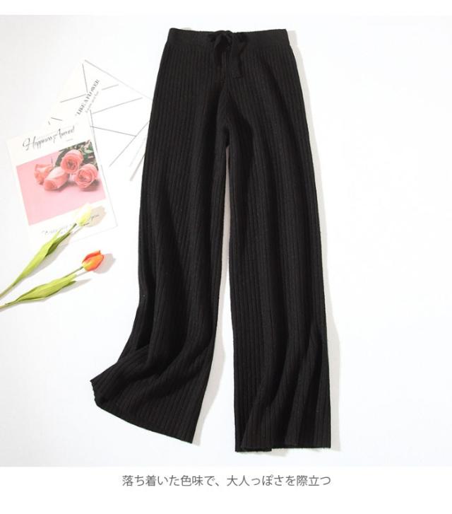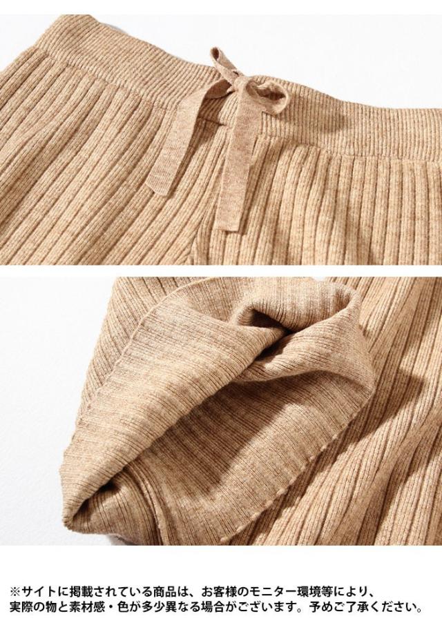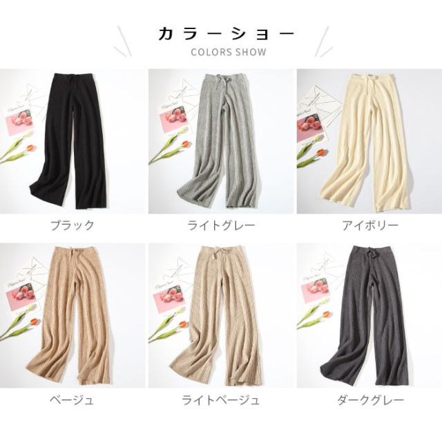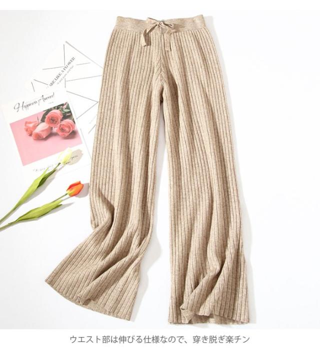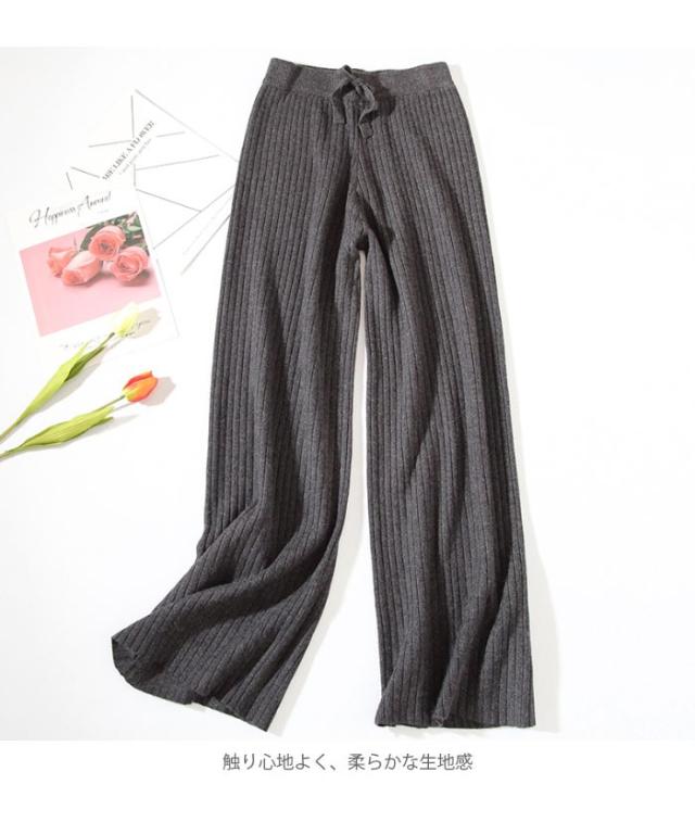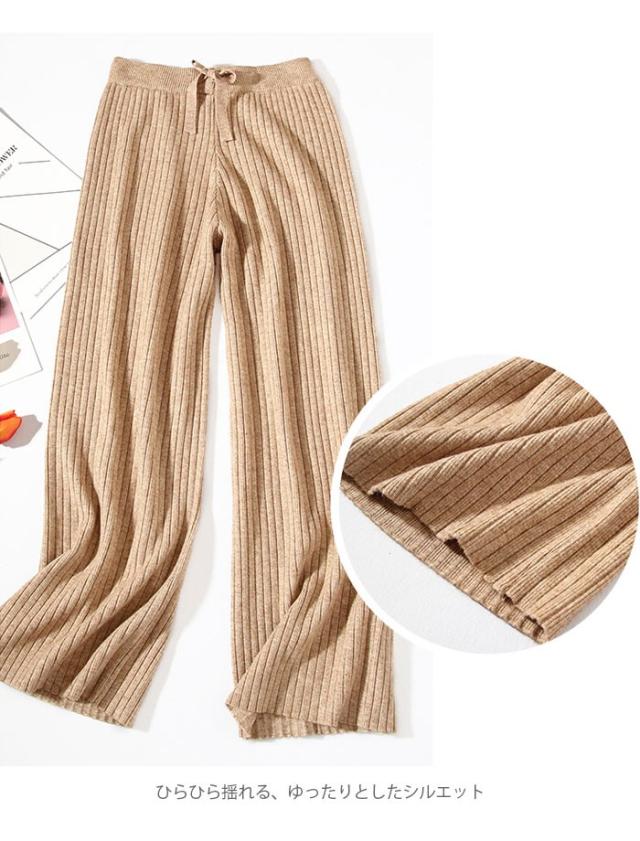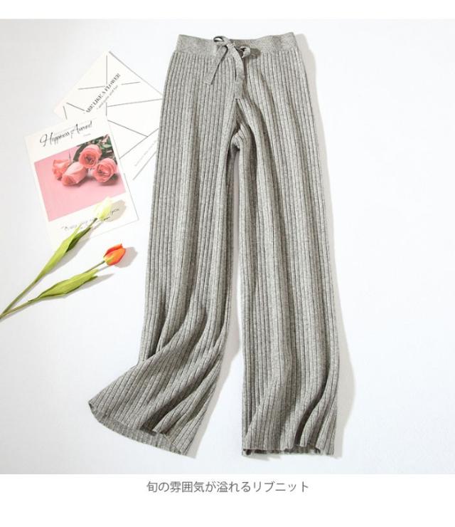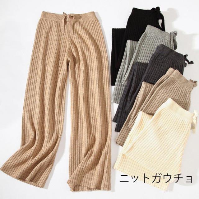 ニットパンツ レディース ガウチョパンツ ニットガウチョ リブニット ロングパンツ ロングガウチョ ハイウエスト ゆったり ゆるパンツ ボトムス 冬新作