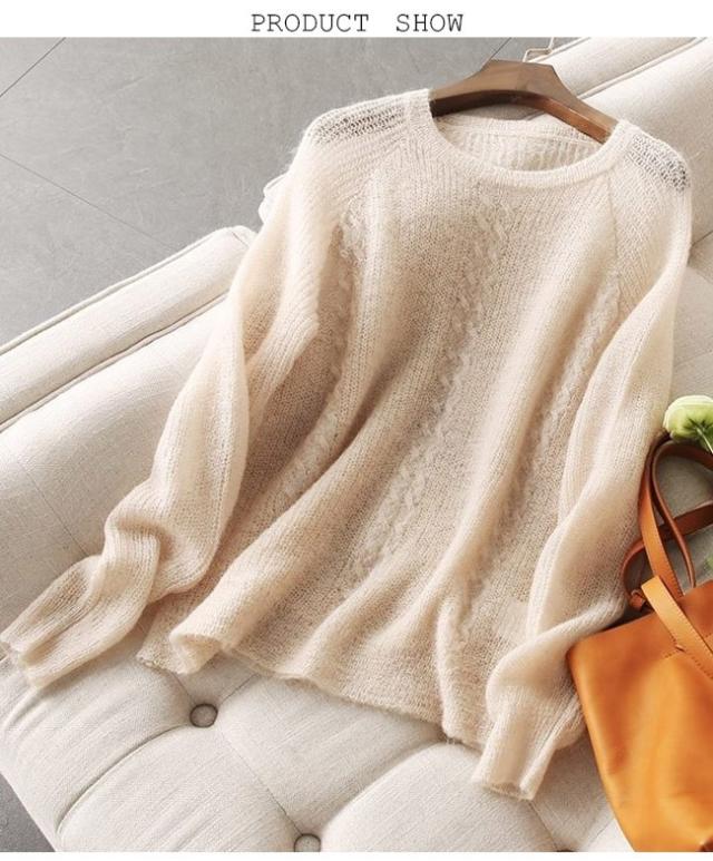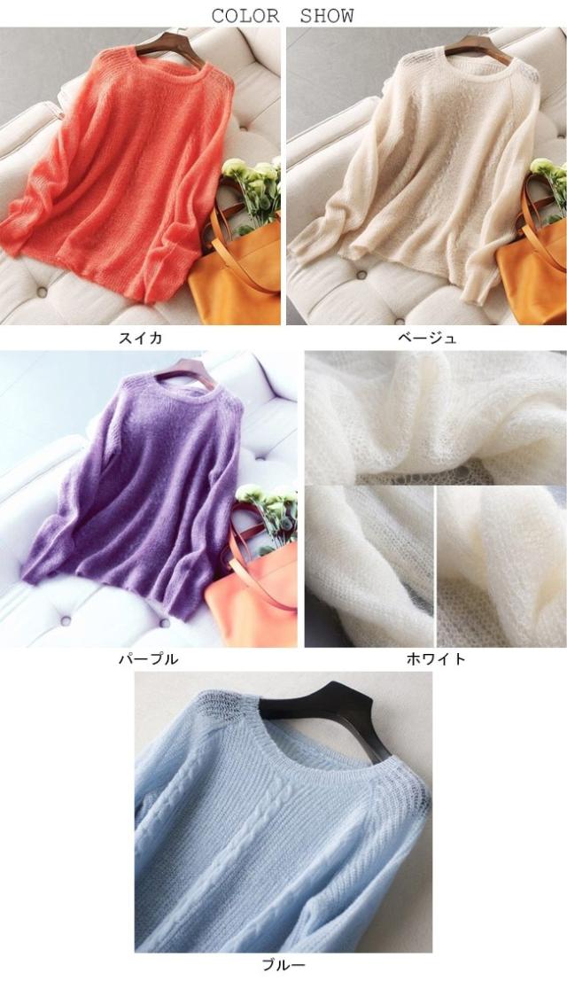 ニットセーター レディース ニットトップス 透明 セーター ゆったり 女性 ニット レトロ モコモコ お洒落 春秋 冬 トップス