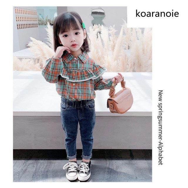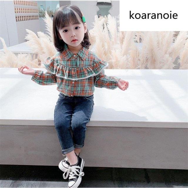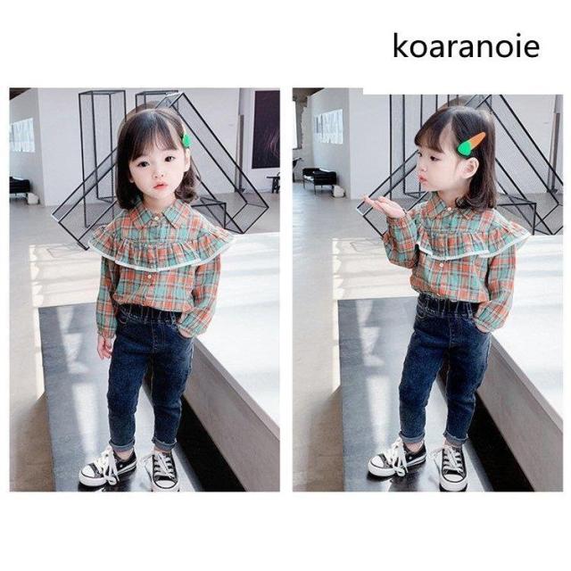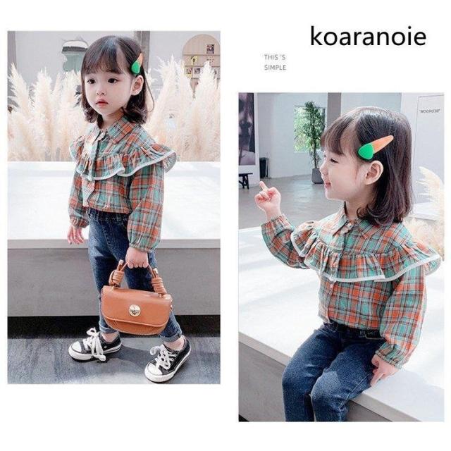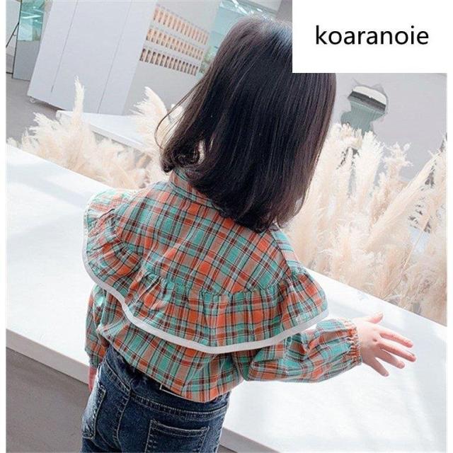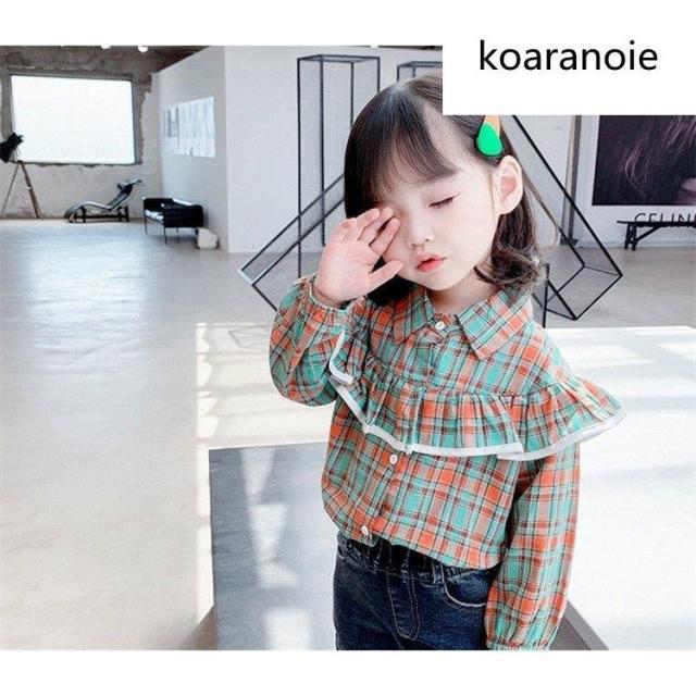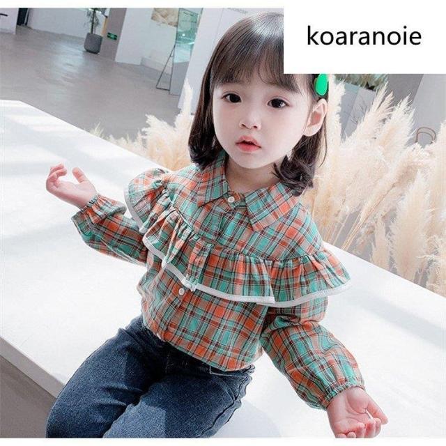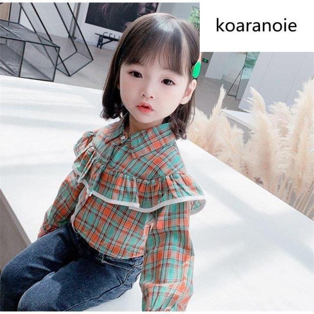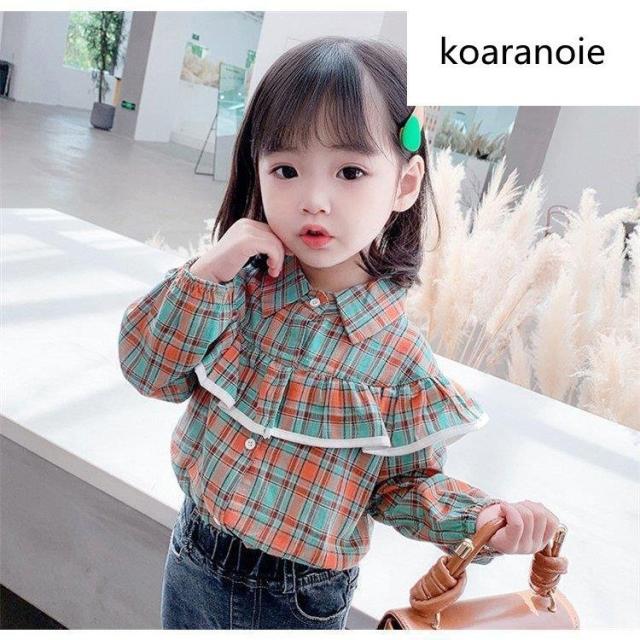 ブラウス キッズ 長袖 韓国子供服 女の子 トップス チェック柄 春服 子供服 Tシャツ 普段着 ベビー服 カジュアル 可愛い おしゃれ お出かけ 通学着 新品 80 90