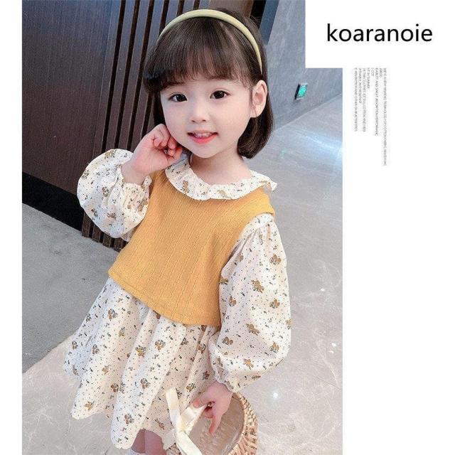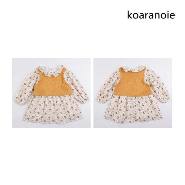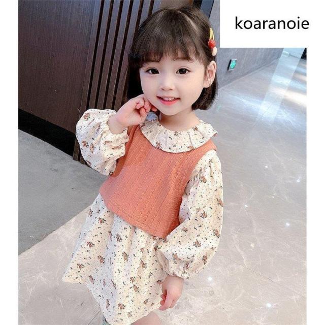 子供服 セットアップ キッズ 女の子 長袖 春服 上下セット トップス ベスト ニット ワンピース 花柄 韓国子供服 ベービー おしゃれ 可愛い 新品 80 90 100 110