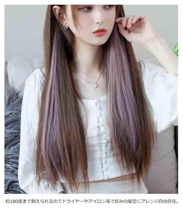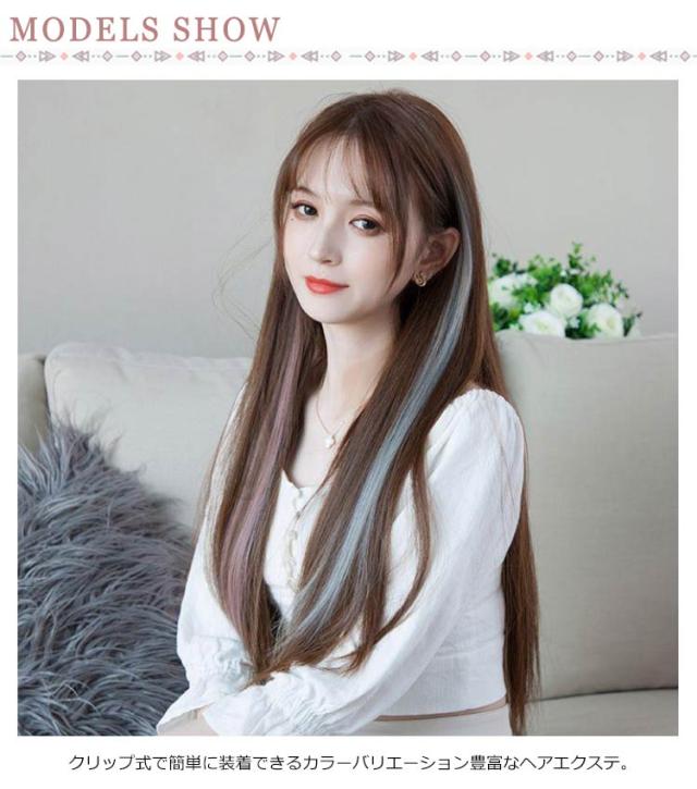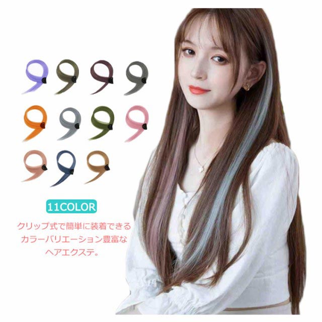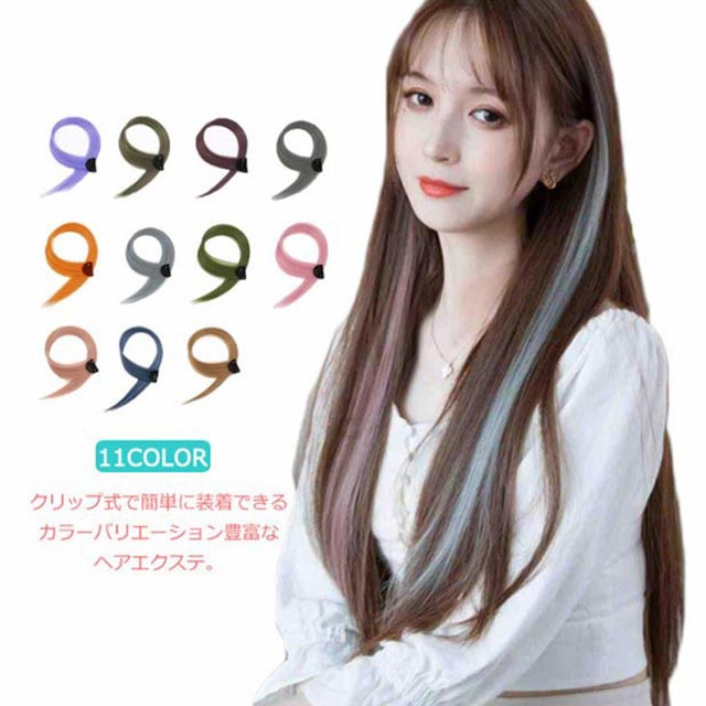 送料無料 全11色 ワンタッチ エクステ ウィッグ エクステンション カラーエクステ 襟足 ロング つけ毛 耐熱 メッシュ 自然 ワンポイントカラー ストレート グラデーション カラフル ライブ ダンス コスプレ ハロウィン 60cm 2枚セット