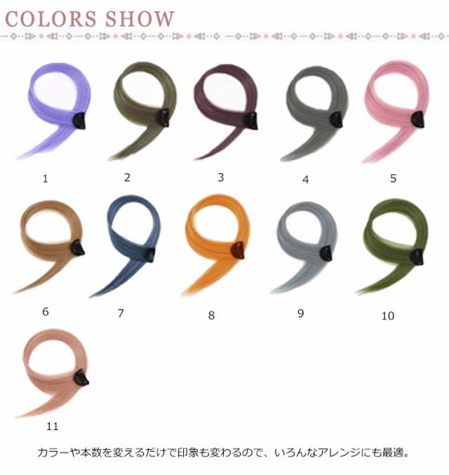 | クリップ式で簡単に装着できるカラーバリエーション豊富なヘアエクステ。 お好みの長さに切ってお使いいただけ、テカリが少なくサラサラとしているので本物の髪のように自然と地毛に馴染みます♪ 約180度まで耐えられるのでドライヤーやアイロン等で好みの髪型にアレンジ自由自在。 カラーや本数を変えるだけで印象も変わるので、いろんなアレンジにも最適。 | |