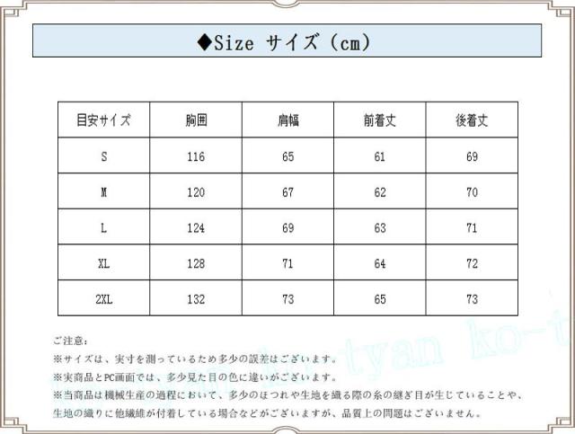 | サイズについての説明 | ◆サイズ:S M L XL 2XL ◆ご注意 ※サイズは平置き、メジャー採寸を行っております。実寸は商品によって(2-3cm前後)に誤差が生じる場合がございますので、予めご了承くださいませ。 |