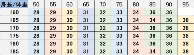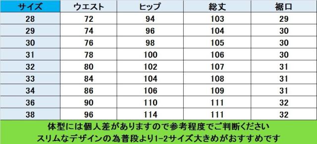 | サイズ | 28 29 30 31 32 33 34 36 38 |