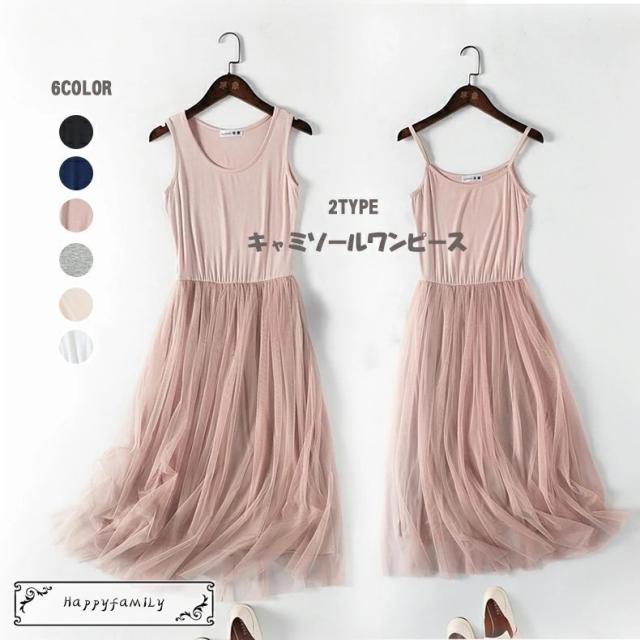 キャミソールワンピース チュールスカート ロング チュールワンピース レディース インナーワンピースキャミワンピ 無地 ペチコート インナー