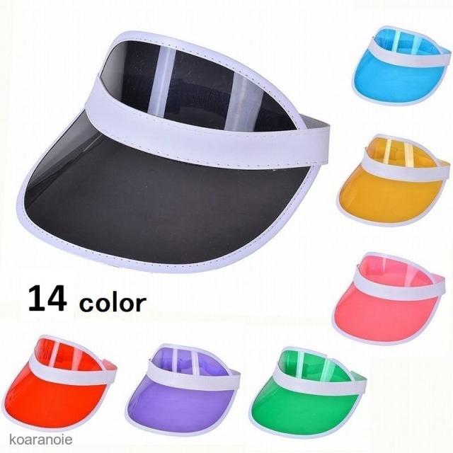 サンバイザー 無地 クリア カラフル 透明 ダンス 文化祭 体育祭 衣装 ユニセックス 男女兼用 ゴムバンド 野外 日焼け対策