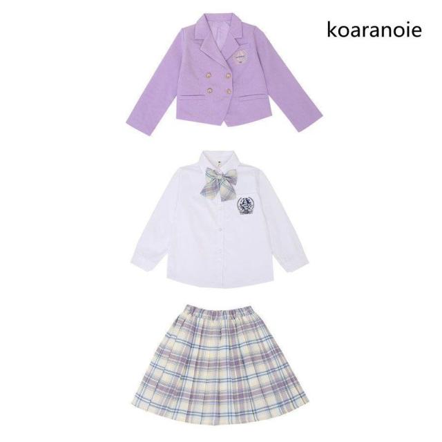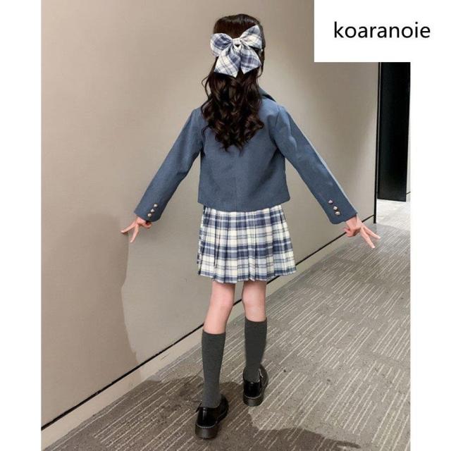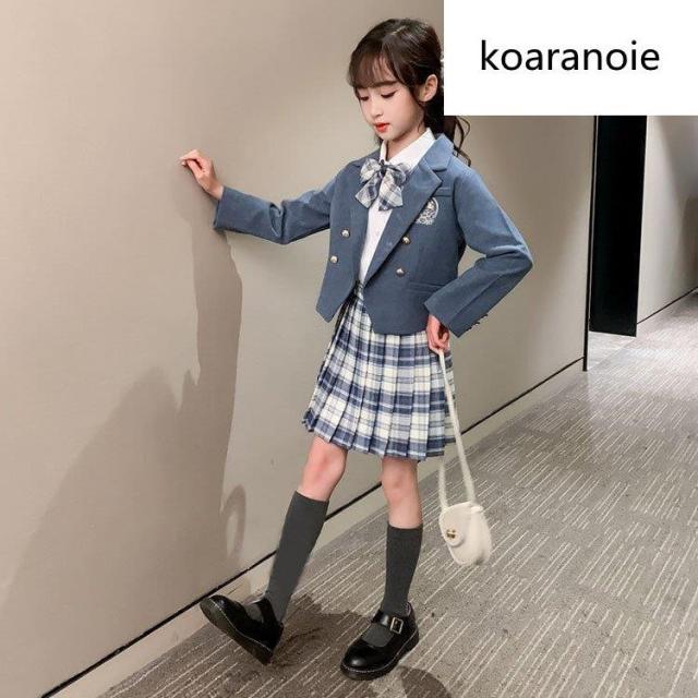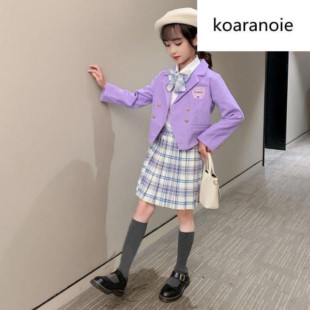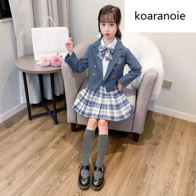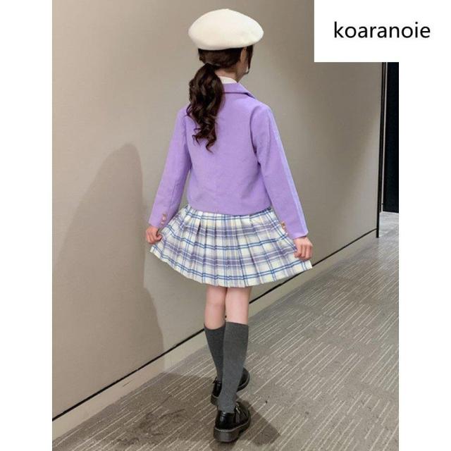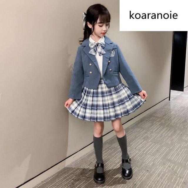 子供服 スーツ フォーマル 女の子 小学生 3点セットアップ キッズ おしゃれ 長袖 春秋 ジュニア ブレザー ジャケット*シャツ*チェックスカート 卒業式/入学式2色