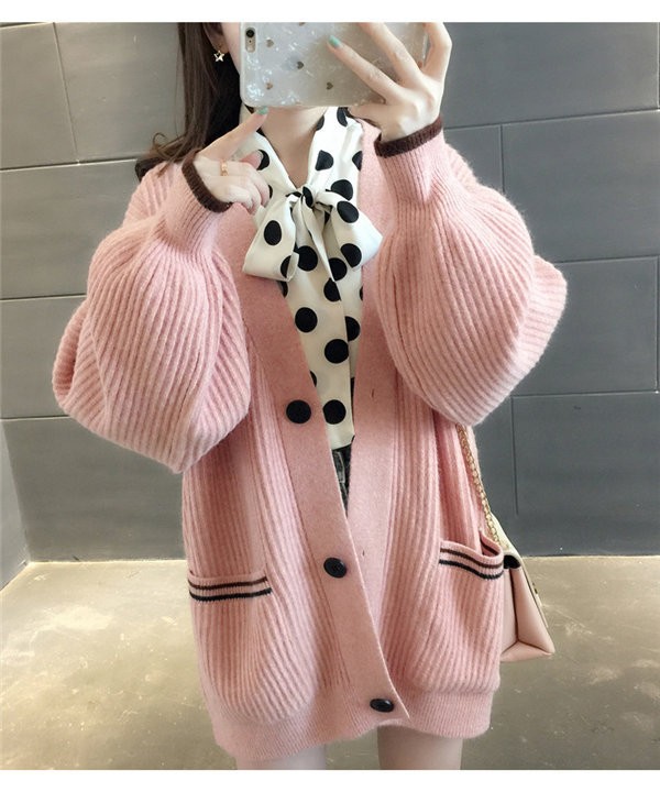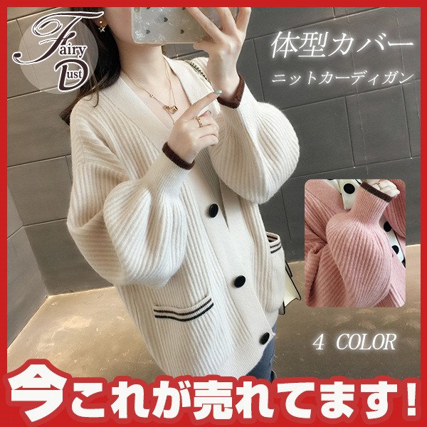 ニットカーディガン レディース カーデアウタートップス 羽織シンプル 前開き アウター 秋コート女性ガーリーセーターゆったり 体型カバー 可愛い