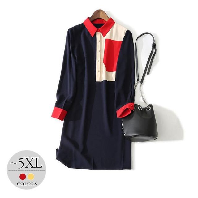 ワンピース 襟付き アシンメトリー 大きいサイズ ボタン 個性的 きれいめ カジュアルウェア 休日 学校行事 ドライブ キレイ目 食事会 母親 リモート