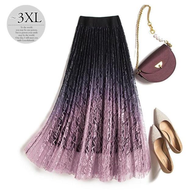 スカート レース 透け感 アコーディオンプリーツ グラデーション ママスタイル 女子旅 きれいめ かわいい 可愛い 定番 大人可愛い 母親 ドライブ