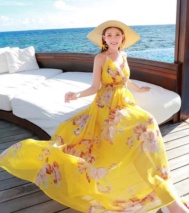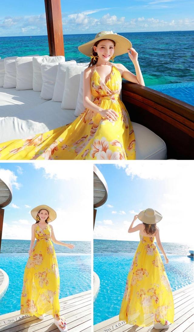 リゾートワンピース マキシ 花柄 ワンピース リゾート レディース シフォン ハワイワンピース ベアトップ 吊り オフショルダー ビーチワンピ 海 旅行 ボヘミア