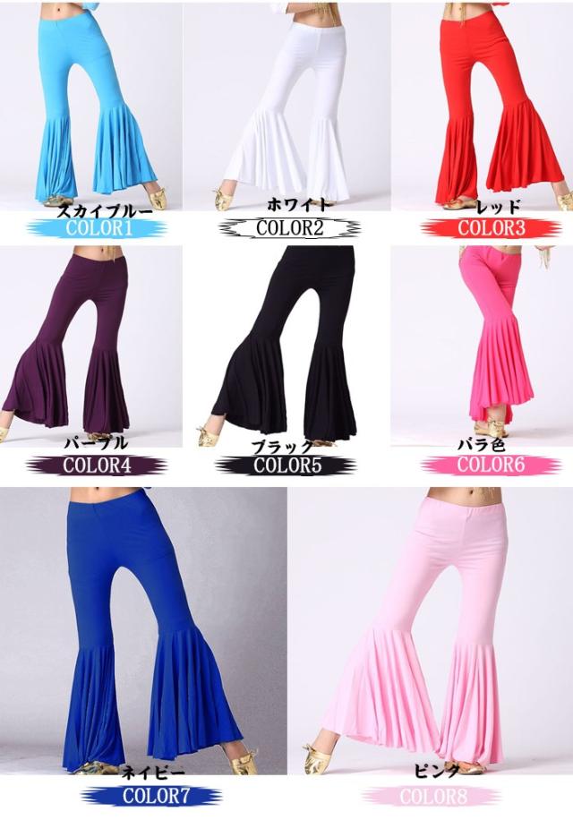 ダンスパンツ レデイース ダンス衣装 ヨガパンツ ベリーダンス レッスン着 フレアパンツ 社交ダンス 無地