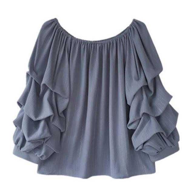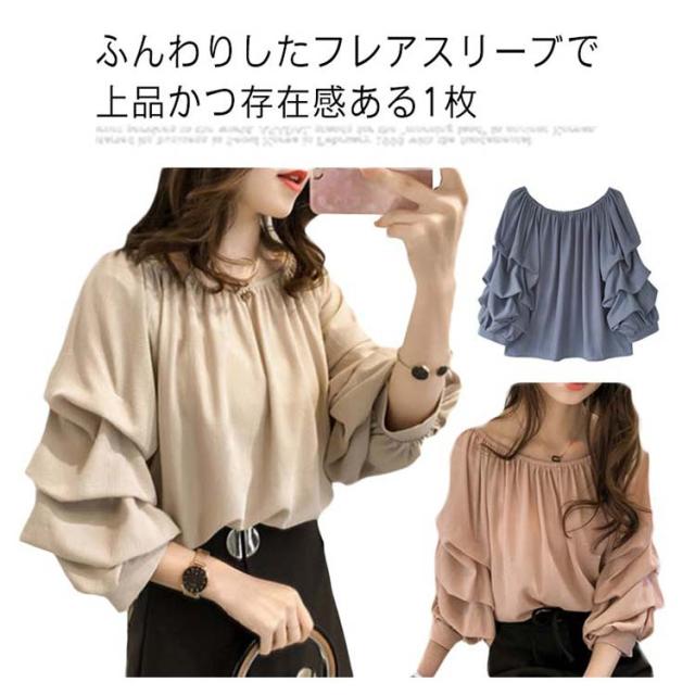 ブラウス レディース ラッフルスリーブ 送料無料 フリル プルオーバー 長袖 トップス シャツ きれいめ 仕事 ブルー ベージュ ピンク