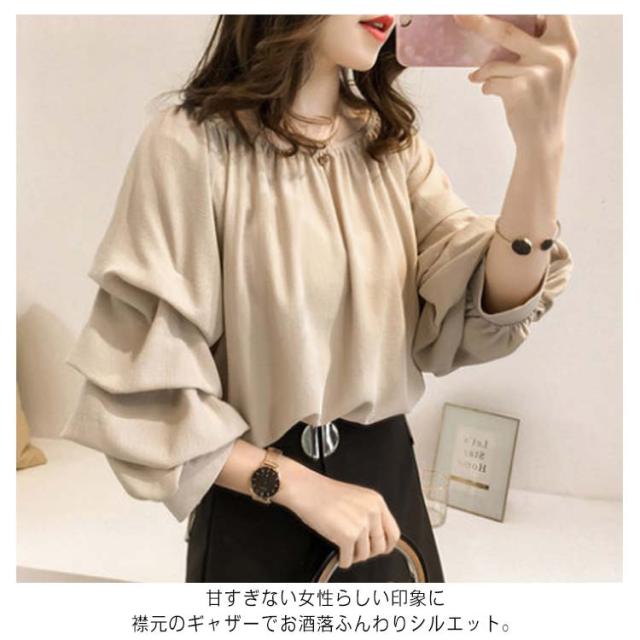 | ふんわりしたフレアスリーブで上品かつ存在感ある1枚 程よく抜け感がありカジュアル使いも 甘すぎない女性らしい印象に 襟元のギャザーでお酒落ふんわりシルエット。 ゆったりとしたシルエットで体型カバー効果も。 なカラーでボトムスを選びません。 | |