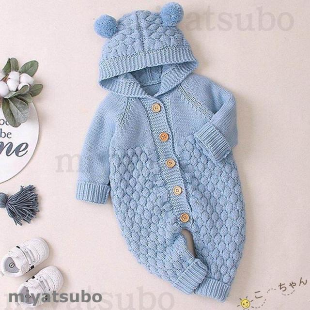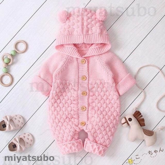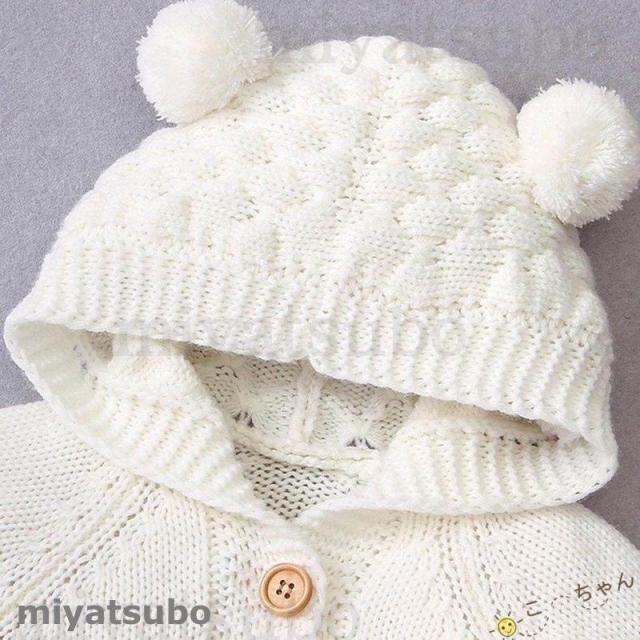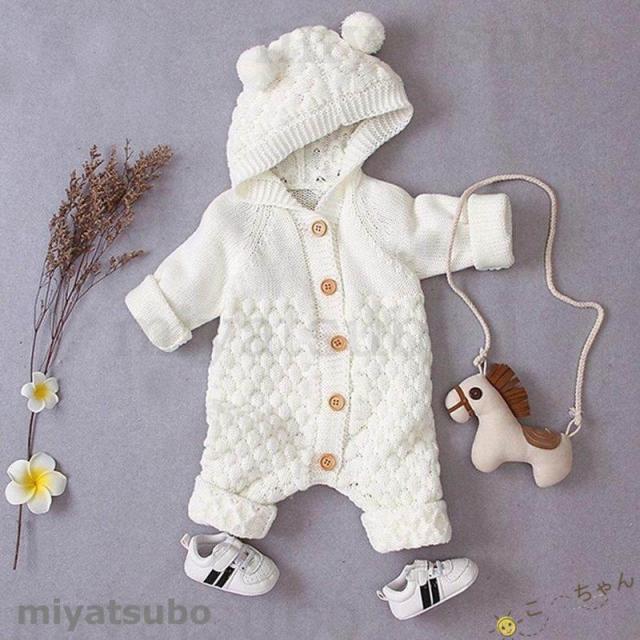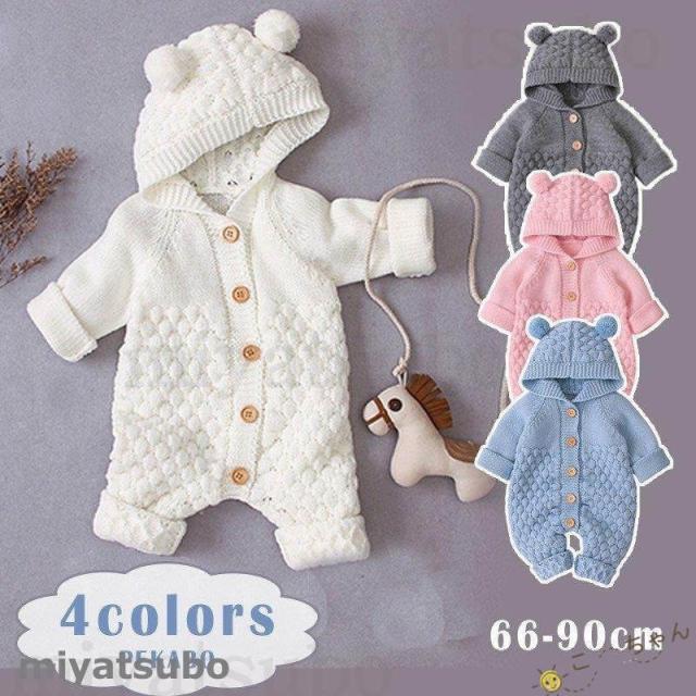 ベビー服 ロンパース 子供 新生児 着ぐるみ クマちゃん 男の子 女の子 出産祝い ニットロンパース フード付き 長袖 66 73 80 90 かわいい 動物